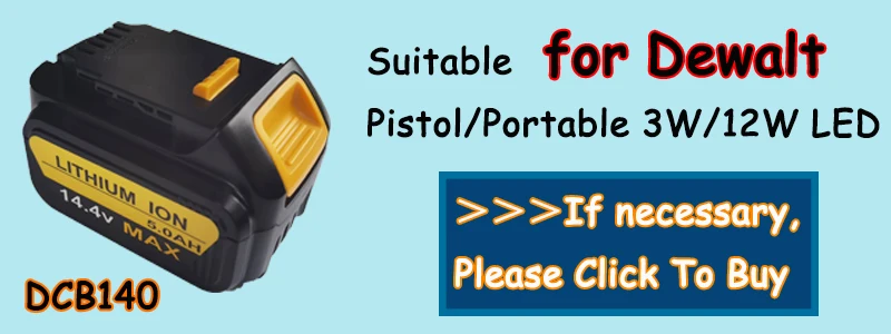 Фонарик для установки на батарею Dewalt 312 Вт, 18 В, светодиодные лампы, для батарей Dewalt DCB140, DCB200 (без батареи и зарядного устройства), литиевых, с USB, для использования на природе