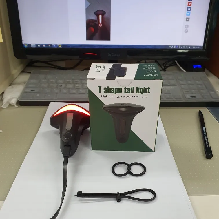 До СПб пришел за неделю. Что очень порадовало. Упакован был отлично в воздушный бокс. Сам фонарь в заводской упаковке. В комплекте инструкция (англ. и китайский языки), кабель для зарядки, 2 пластиковых хамута, 2 колечка (видимо чтоб не ерзал) и собственно сам фонарь. Пришел почти полностью заряженным. Светит очень ярко. Батарейка на 1400 мАч. Есть 7 режимов работы. Стоп сигнал сработывает четко. Товаром доволен. Рекомендую)