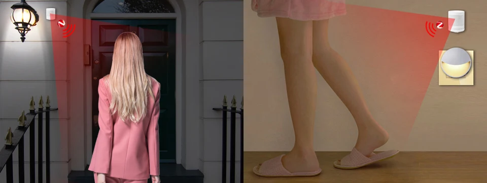 Установите датчик окна двери на дверь и сотрудничайте с переключателем Zigbee, чтобы установить связь сцены. Когда вы вернетесь домой и откроете дверь, светильник автоматически включится.