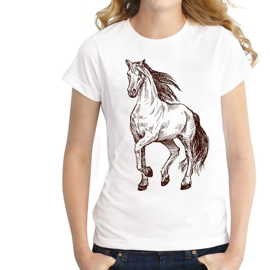 Женская футболка с коротким рукавом, круглым вырезом и принтом лошади