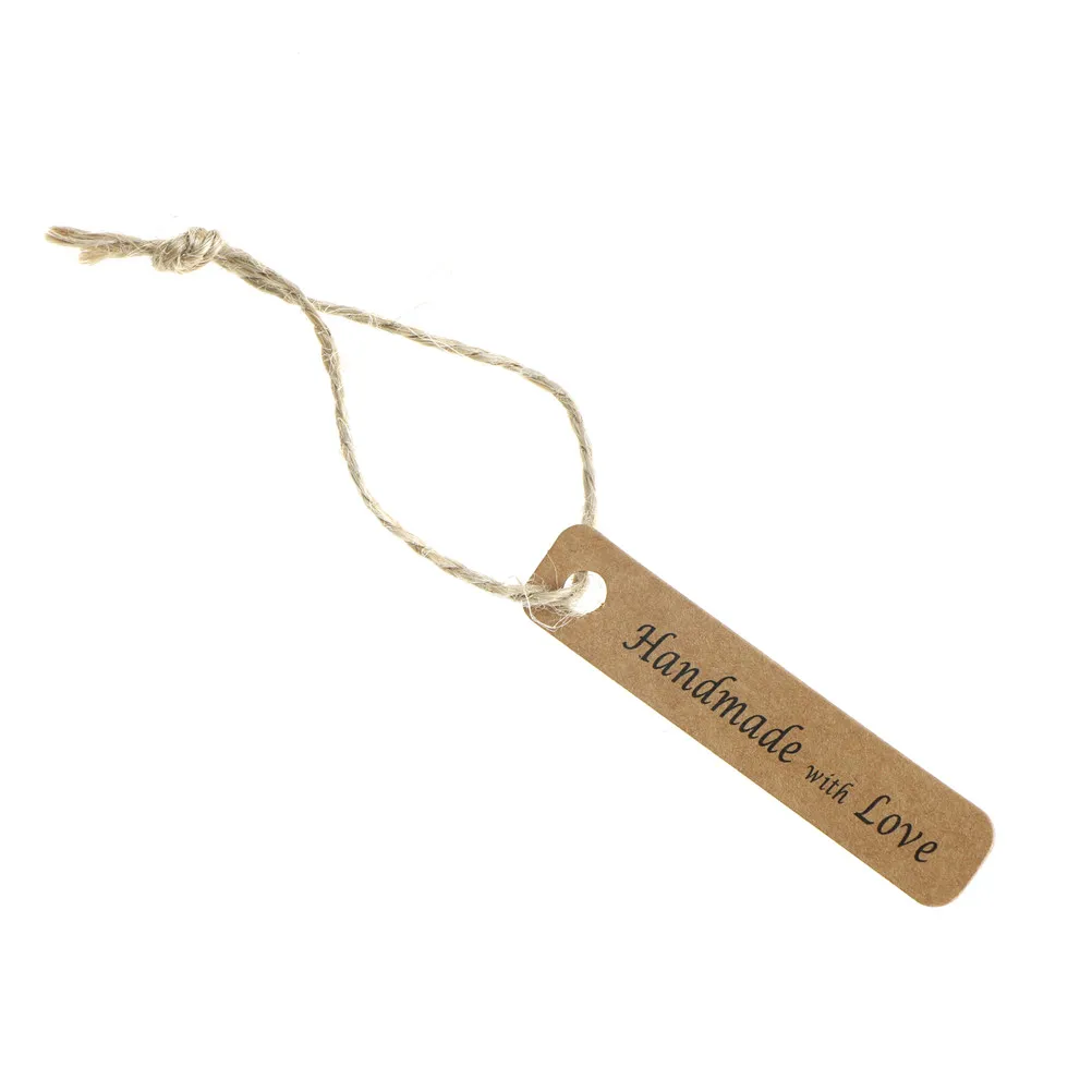 100 шт. этикетки ручной работы с надписью Love для одежды, милые бумажные бирки, этикетки с бумажными картами, вечерние сувениры, подарок, 10 метров