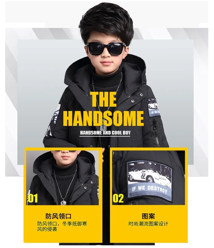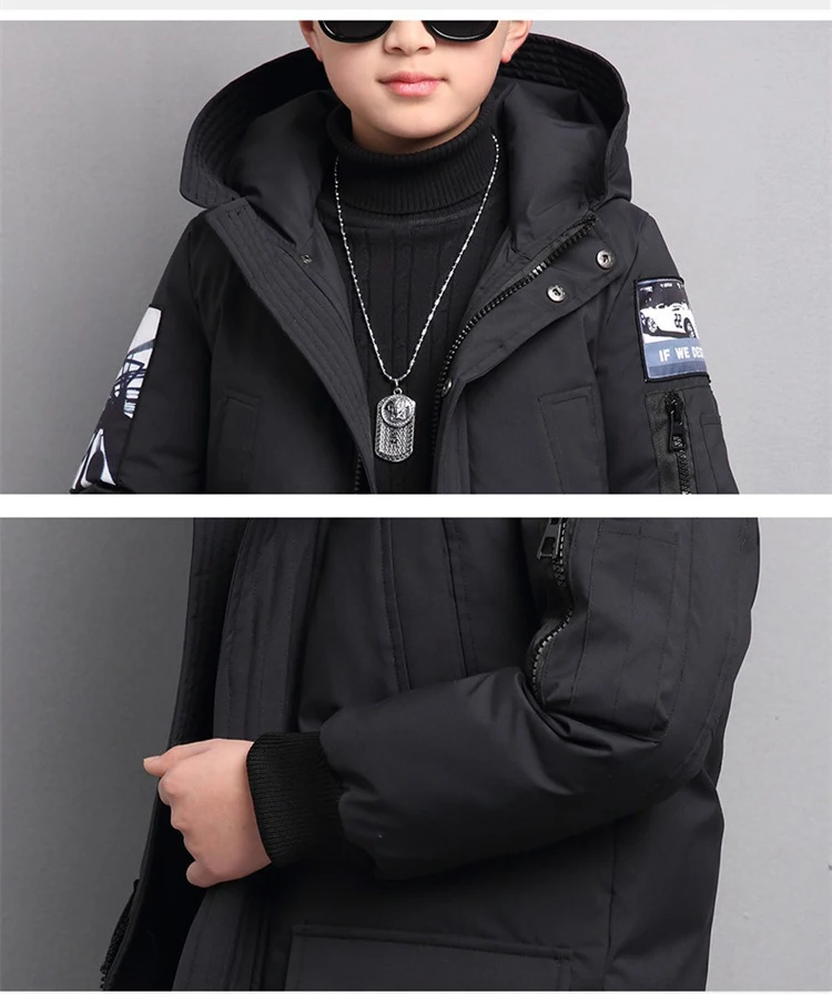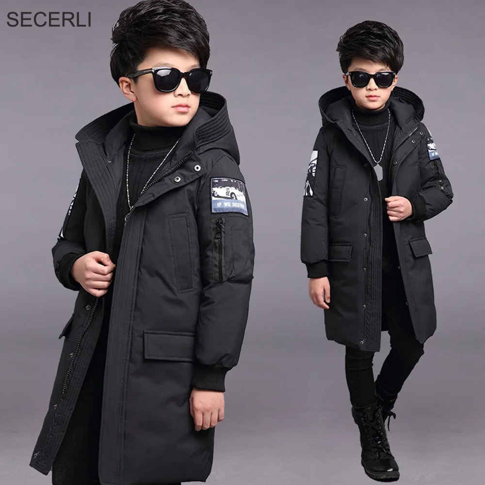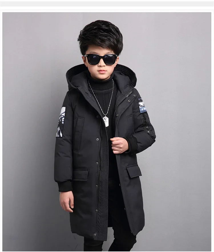 Новое большое зимнее пальто для мальчиков, теплая одежда с капюшоном для мальчиков; Длинная Куртка пуховик на хлопковой подкладке детская ветронепроницаемая парка для детей Верхняя одежда для детей, возраст 3, 6, 8, 115 лет для детей