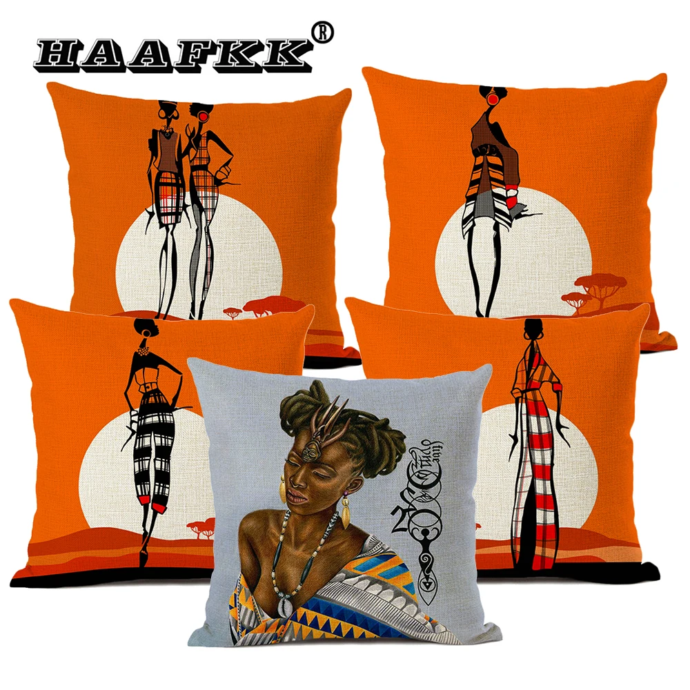 Модная декоративная наволочка в африканском стиле для девушек, наволочка для гостиной, дивана, подушка в национальном стиле 45x45 см, Высококачественная льняная