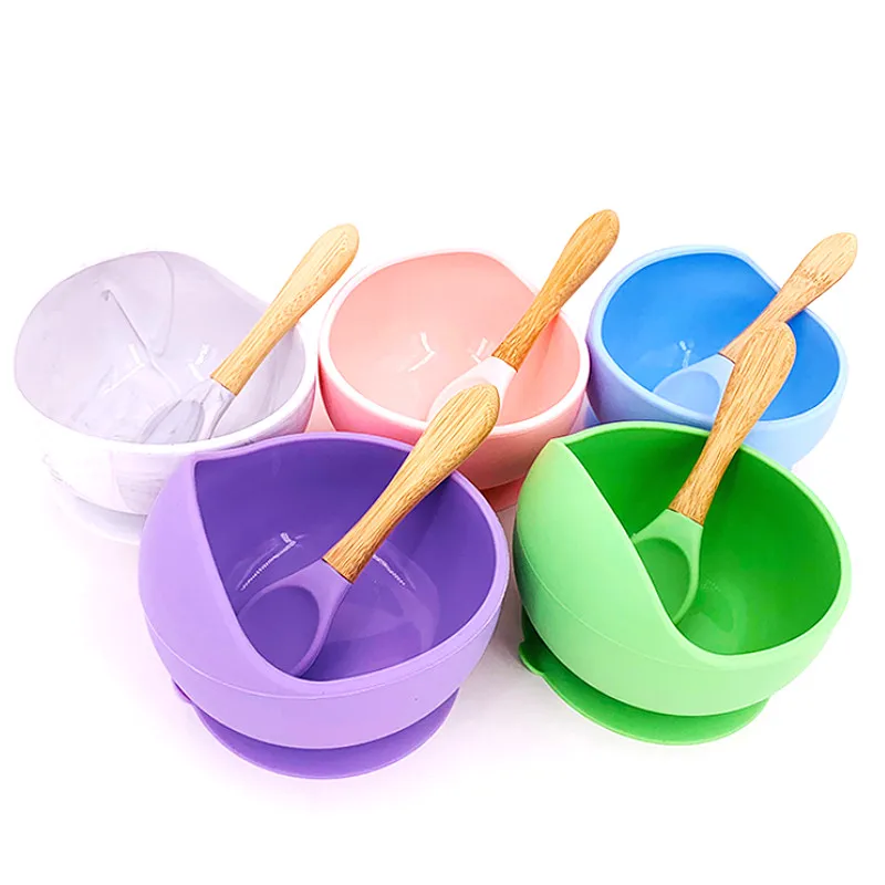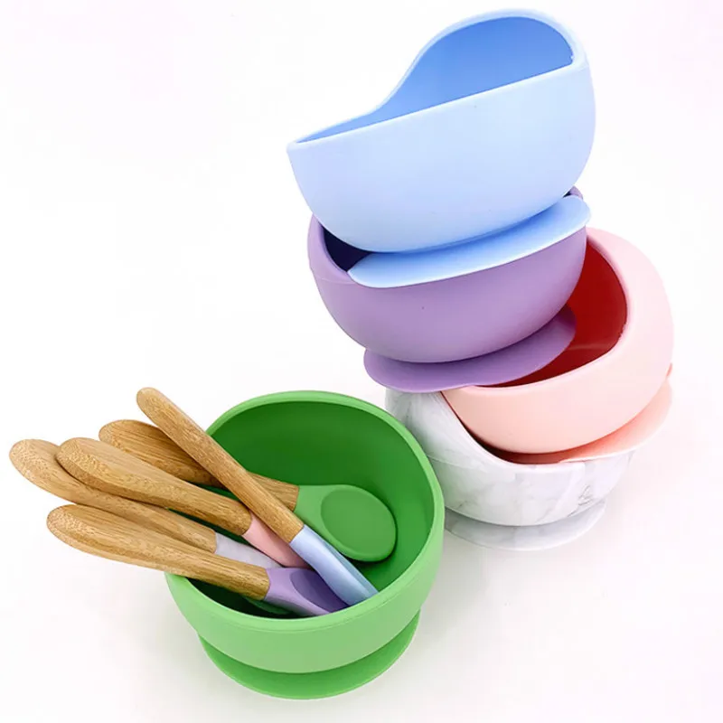 Силиконовая посуда для кормления детей, 1 набор, водонепроницаемая ложка, не скользит, без БФА, силиконовая тарелка, Детская тарелка