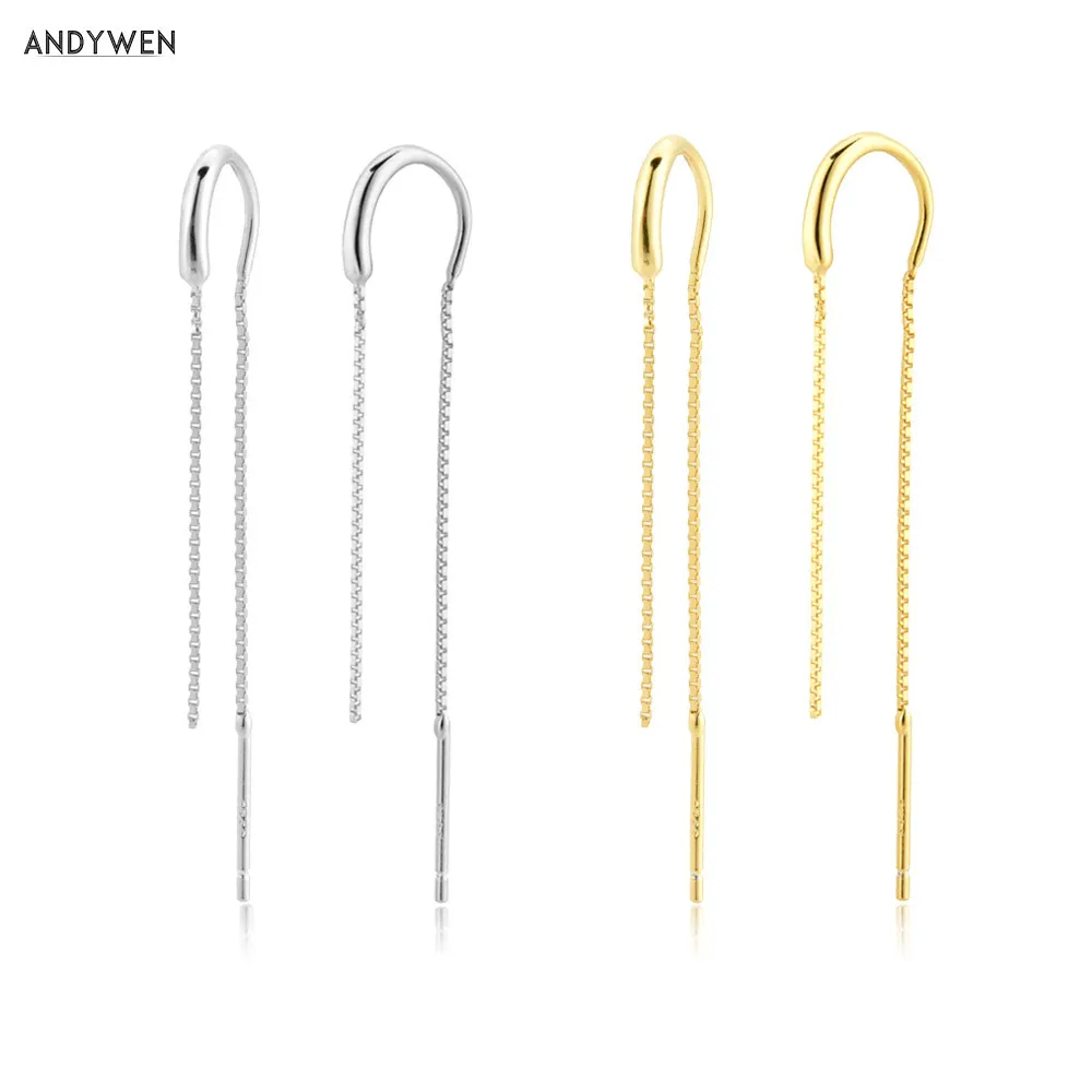 ANDYWEN 925 пробы, серебряная с золотом цепь, пирсинг, длинные висячие серьги, цепочка, булавка, роскошные ювелирные изделия в Испании, рок, кольцо, серьги