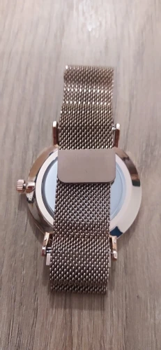 Женские часы с золотистым циферблатом, простой стиль, сетчатый реме...