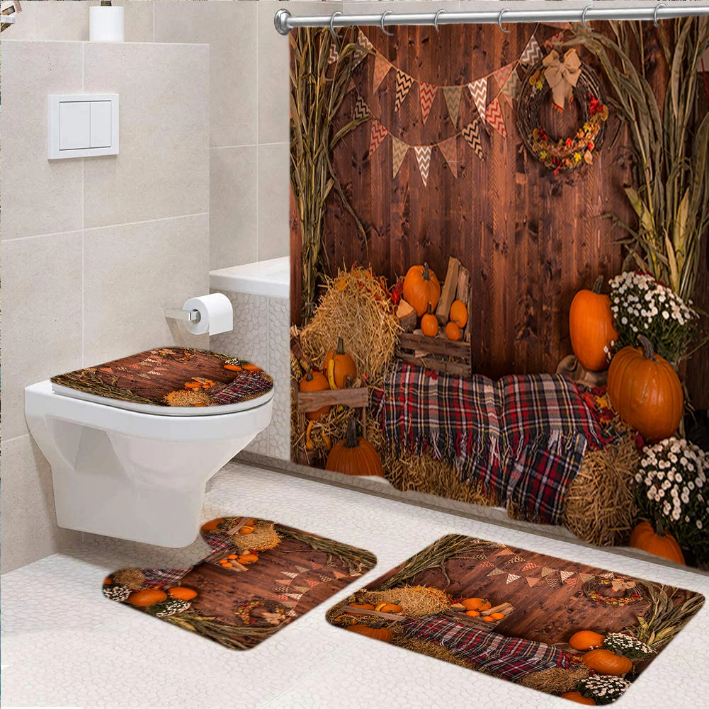 Осеннее платье в тыквы Ванная комната Шторы s комплект Хэллоуин душ Шторы Водонепроницаемый осень дом Нескользящие ковры вечерние домашний декор