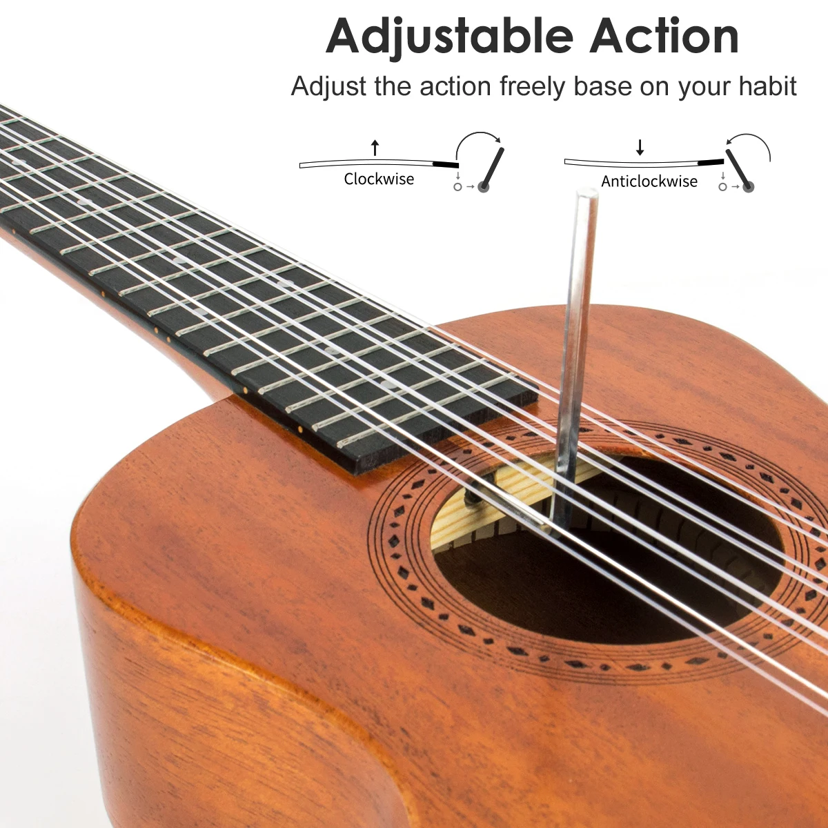 За свои деньги укулеле огонь.В России выбор такого инструмента небольшой, а ценники начинаются от сумм в три раза больше этого инструмента. звучит норм, комплектация супер, особенно чехол - вшиты вставки по бокам и низу т. е. от ударов самое оно.. Струны понятно сразу меняем на ортегу или дадарио. Видимо для транспортировки гриф ослаблен до максимума - расстояние от струн до грифа почти сантиметр к десятому ладу.. Поэтому сразу после получения - пару вечеров калибруем гриф благо шестигранник в комплекте. Инструмент строит, играется легко. Думал будет вещь в лучшем случае на 3 с минусом, а за это деньги на все 5 баллов... для тех кто собирается играть панк-рок и овер зе рейнбоу. ;-) продавец все прислал за неделю - молодец