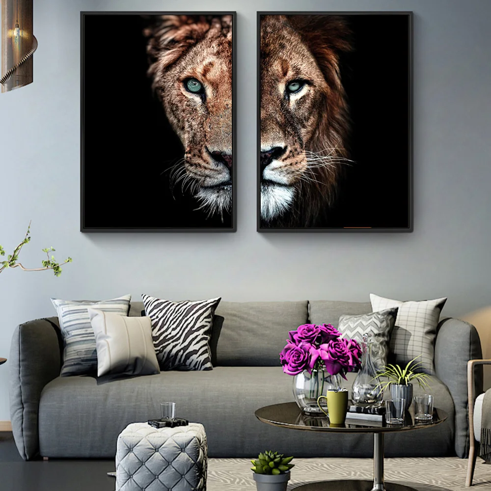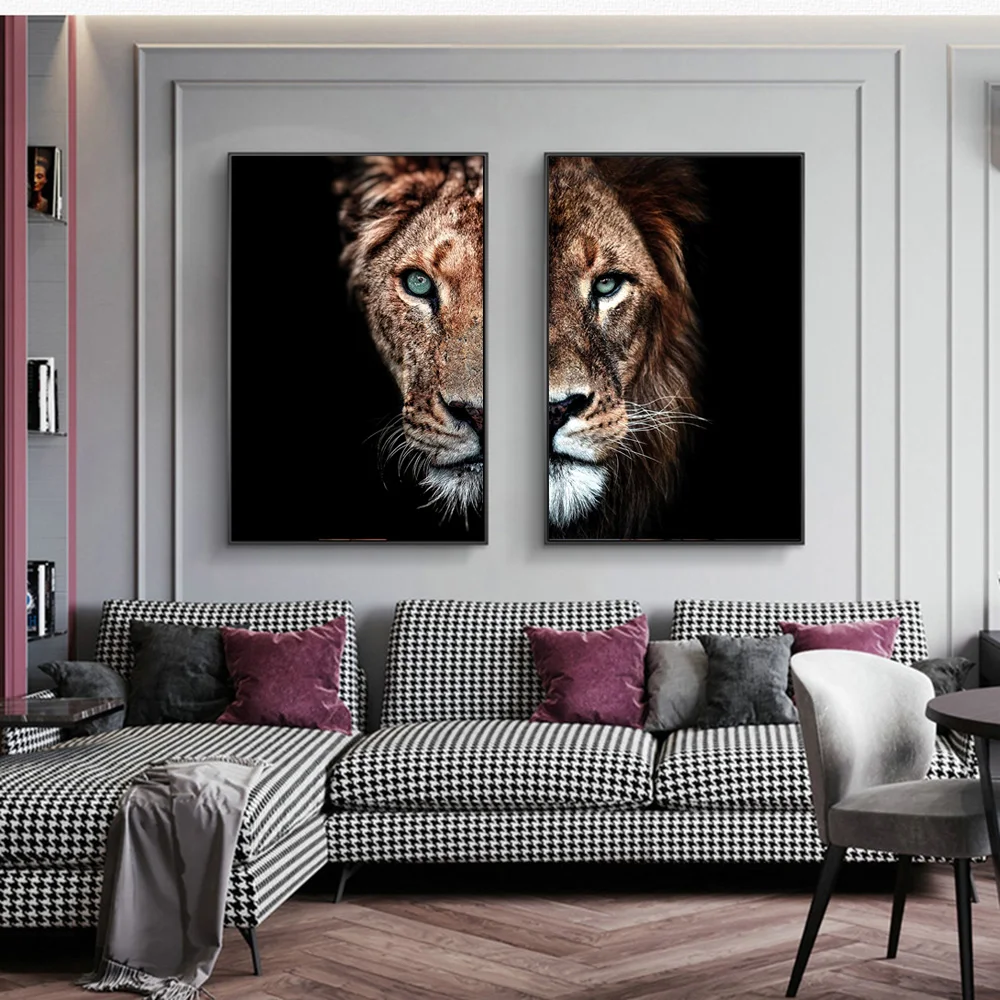 Картины на холсте с изображением Африканского дикого льва и львицы, художественные плакаты и принты животных, Львов