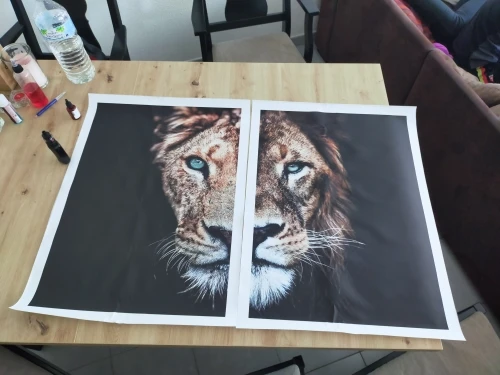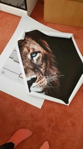 Продавец вежливый и отправил мне без белых граней, как я и хотел. Размер остался 70x100 без белых граней и рассчитан на 70x100 оправы. Качество отличное, однако, если вы обратите внимание, то вы можете увидеть в некоторых местах качество так себе, но снова это довольно большое изображение, поэтому, если вы будете делать меньше, то это должно не заметен. Могу ли я взять на один размер меньше? Конечно нет! Доставка в течение менее 2 недель. Картины покрыли 23,63 евро и рамки, которые я заказал в местном интернет-магазине, покрыли 53,8 евро в общей сложности 77,43 евро.