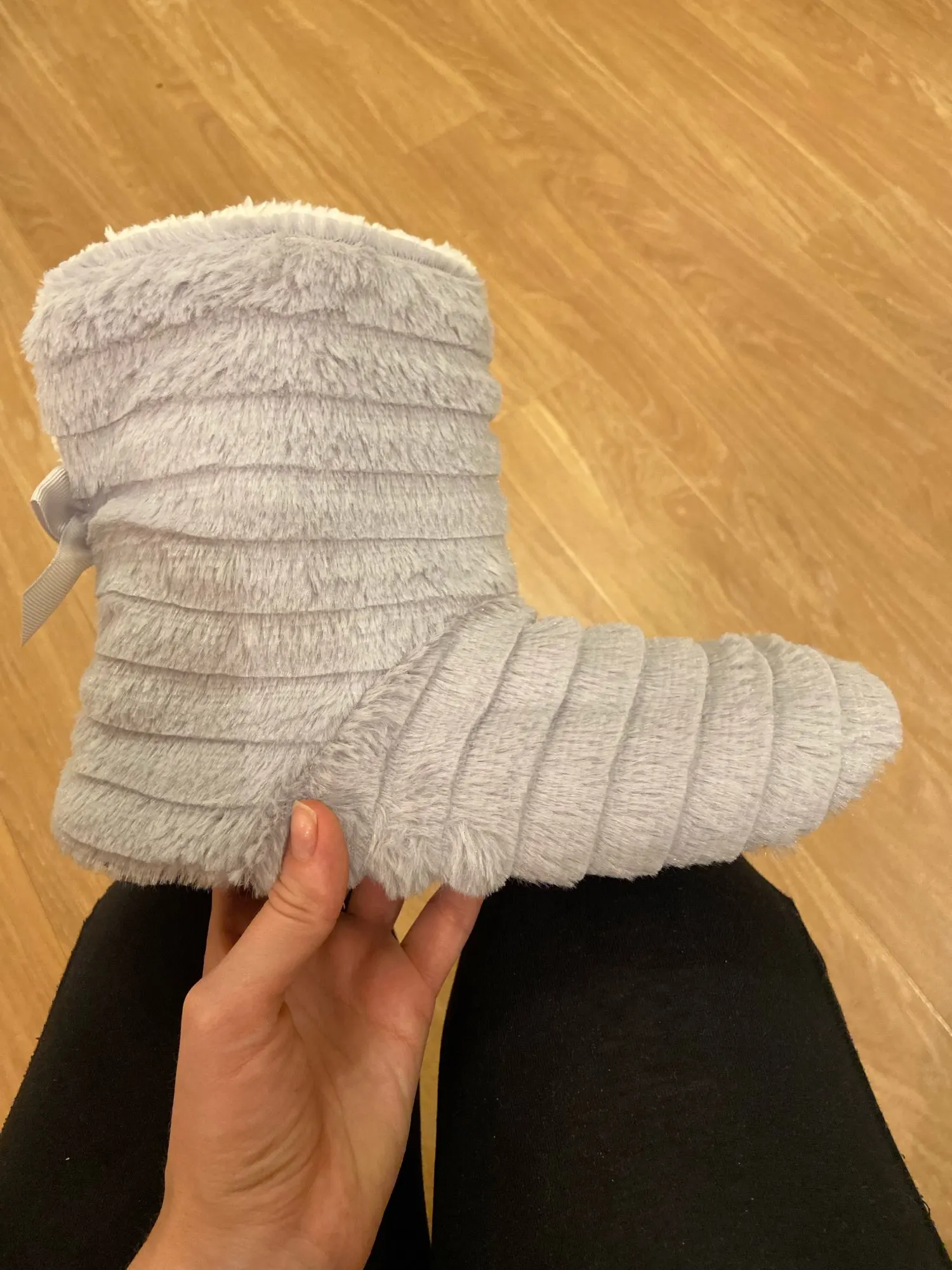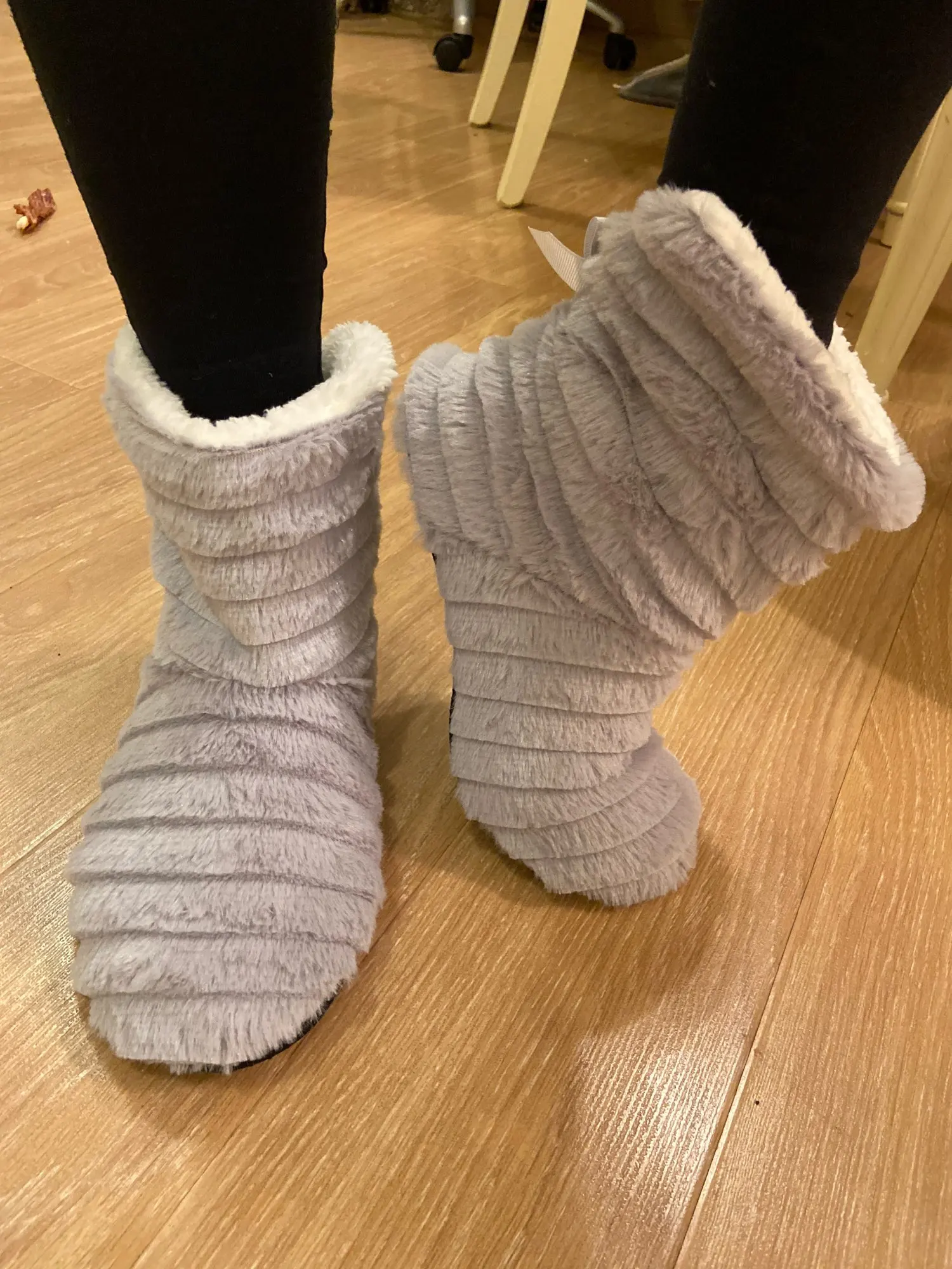 На 38 взяла размер 9. Налезли, т.к. достаточно эластичные, как носки. Идеально было бы 9,5 или даже 10. Ранее были такие же, только розовые. Покупала в другом месте, не на Али. Мне они понравились, поэтому решила взять такие же снова. Хожу в них на даче. Они тёплые и удобные) показалось, что одна тапочка немного неправильно сшита спереди, лекало чуть поехало, но не сильно видно и для меня не критично. с продавцом не общалась.