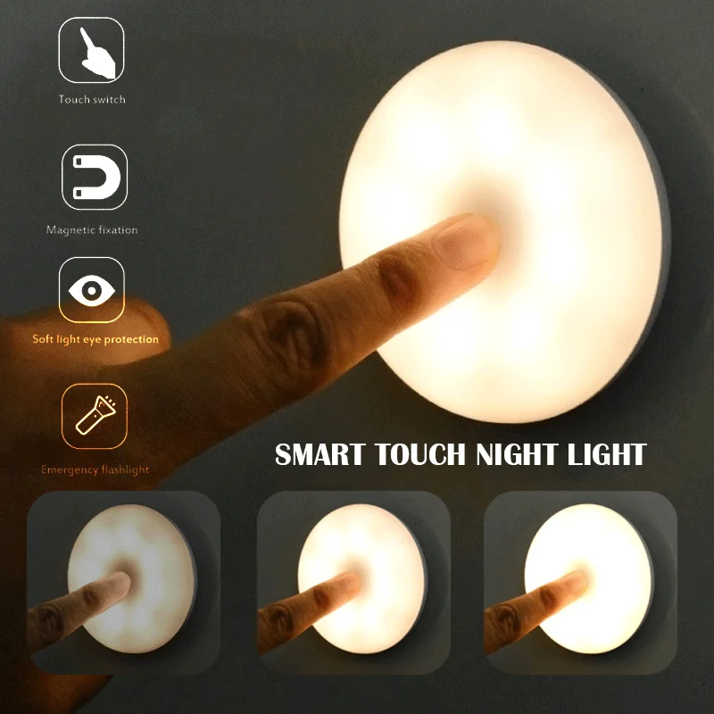 Внутренняя лампа для коридора, для спальни, гардероба, светодиодный круглый сенсорный ночсветильник, фонарик с магнитной основой