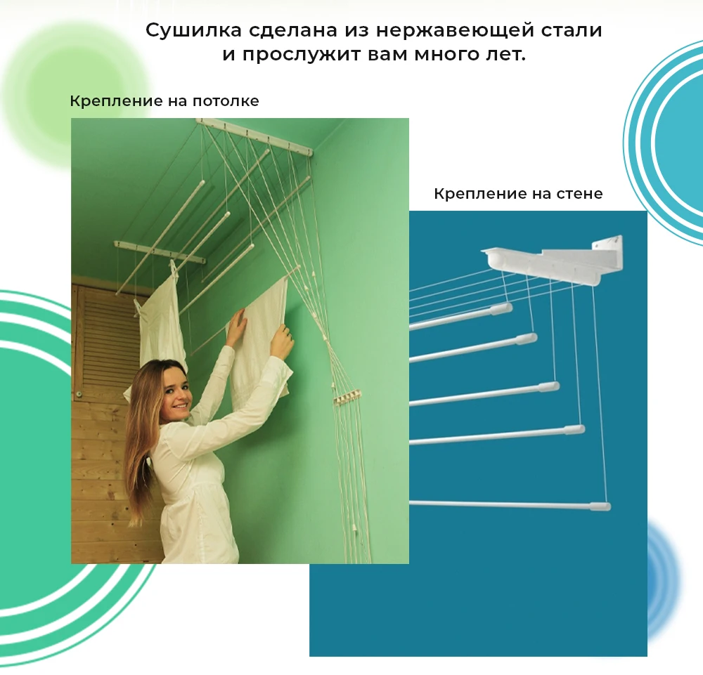 Сушилка для белья потолочная Лиана 1,7м, 5 линий, белый