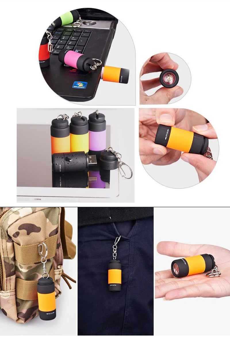Светодиодный мини-фонарик Портативный фонарик брелок небольшой открытый водонепроницаемый Встроенный аккумулятор USB Перезаряжаемый Кемпинговые фонари
