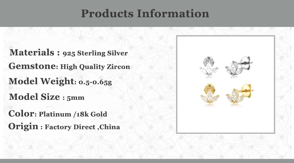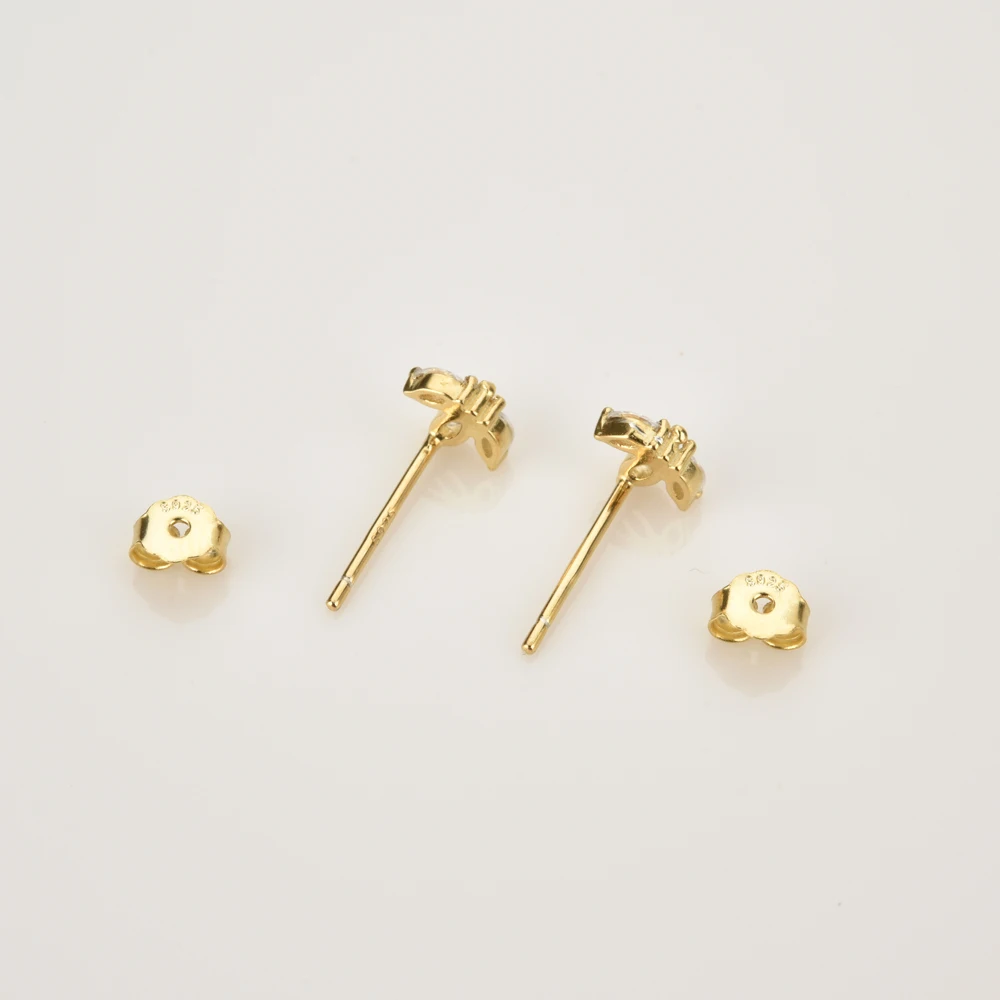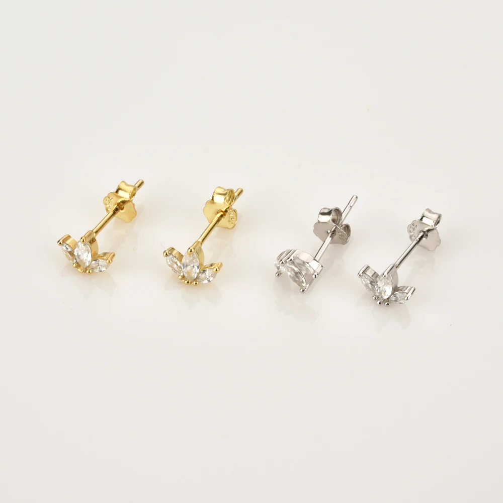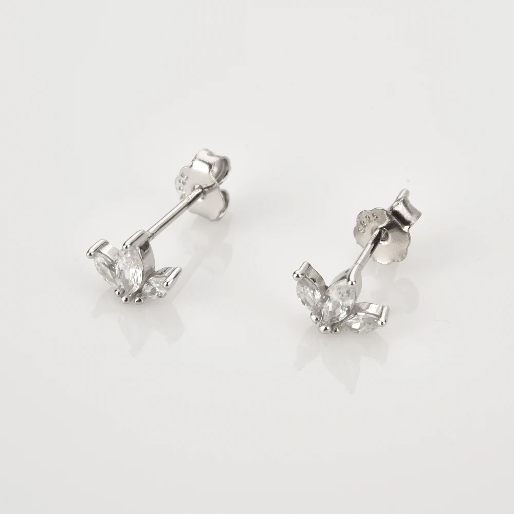 Серьги-гвоздики женские из серебра 925 пробы с тремя цирконами