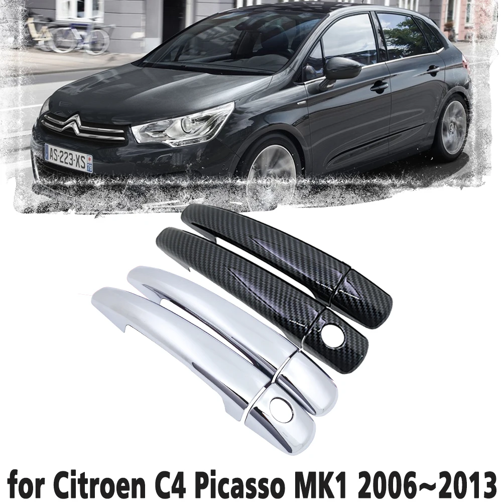 Черная ручка из углеродного волокна или хромированная боковая крышка для Citroen C4 Picasso MK1 2006 ~ 2013 автомобильные аксессуары 2007 2008 2009 2010 2011 2012