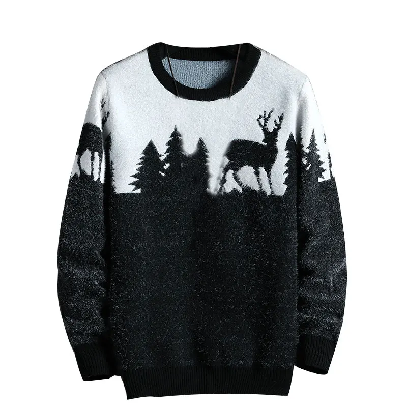 Облегающие свитера с круглым вырезом и рисунком оленя; Трикотажный Мужской пуловер с длинными рукавами