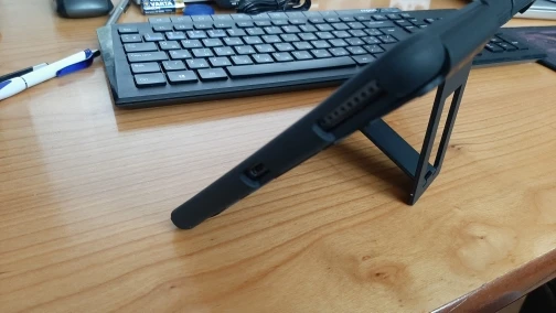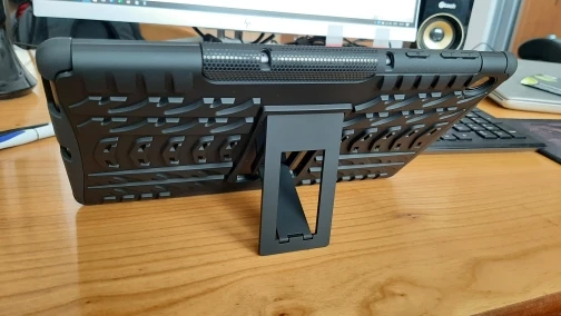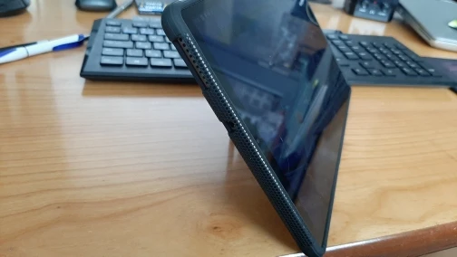 Ножка сзади очень короткая. Поэтому планшет в режиме подставки очень наклонен назад, из за чего не очень удобно сидя его смотреть.