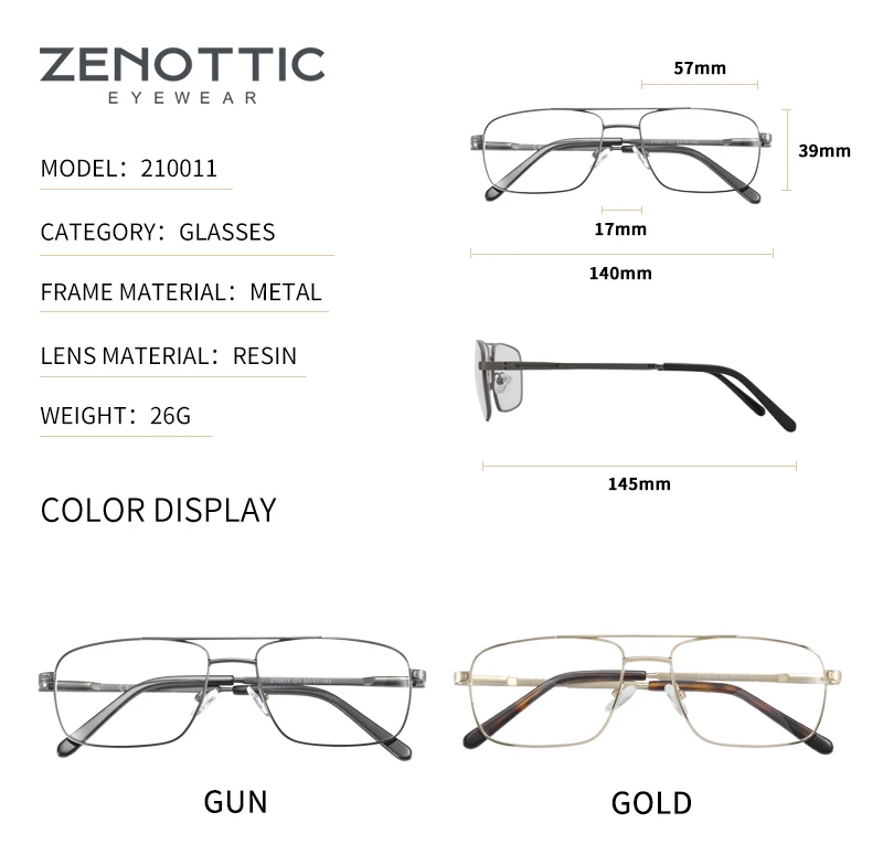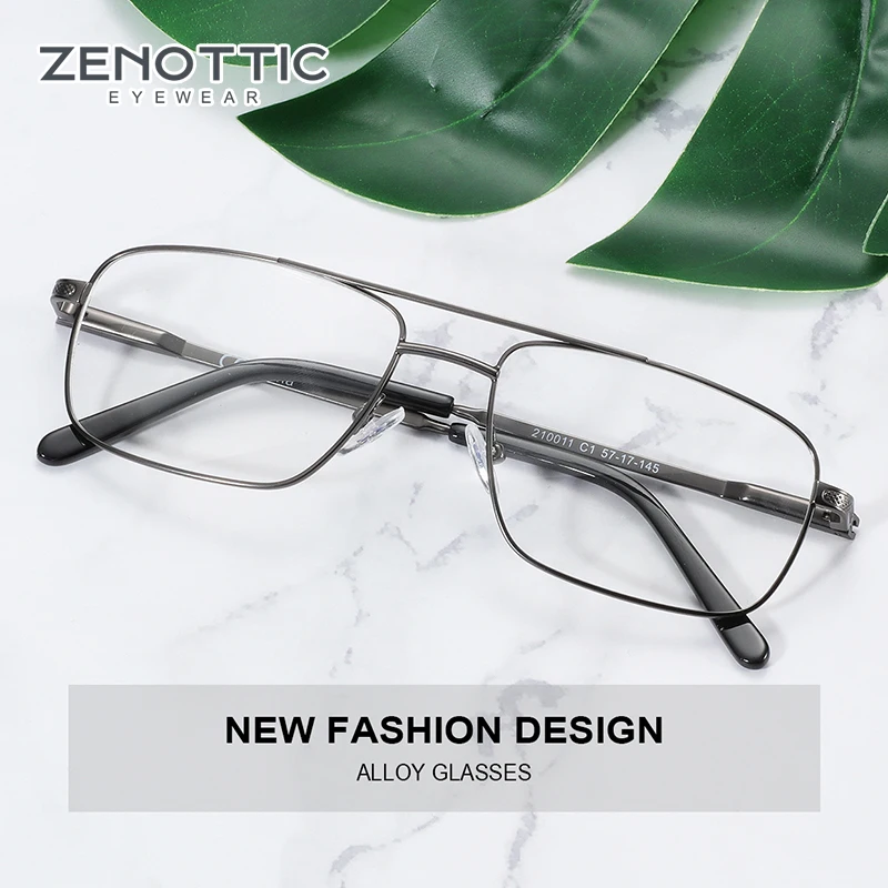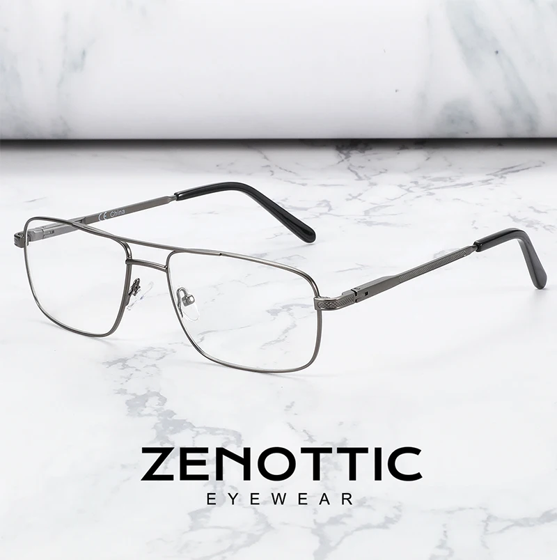 Квадратная оправа для очков ZENOTTIC из сплава, мужские оптические оправы для очков по рецепту, прозрачные линзы, оправы для очков с двойной перемычкой