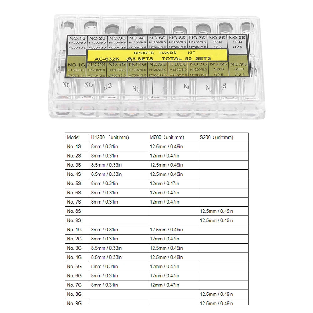 Package List160 x Watch Hands ,1 x Plastic Box