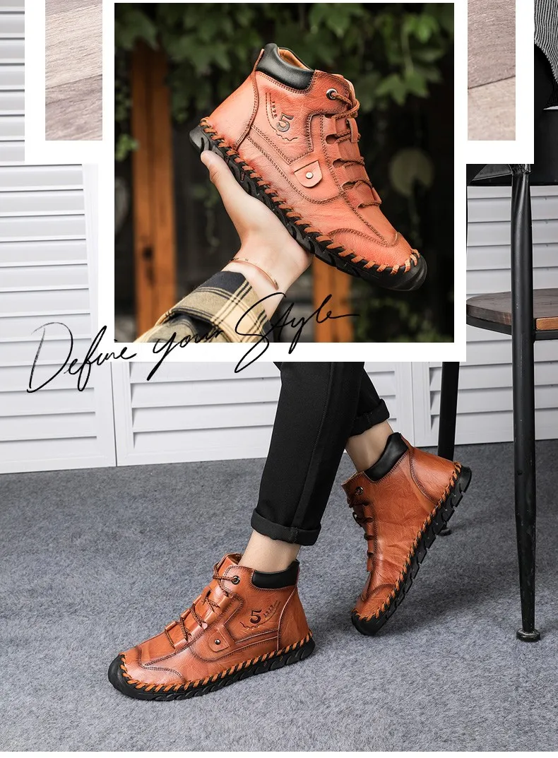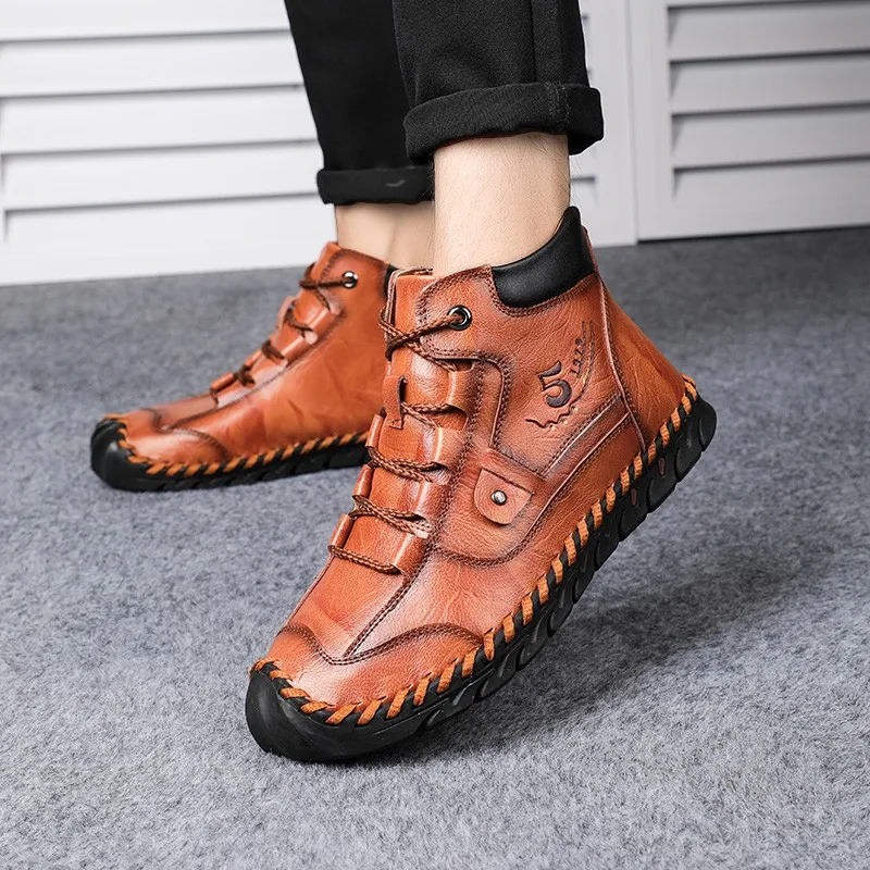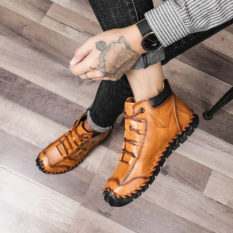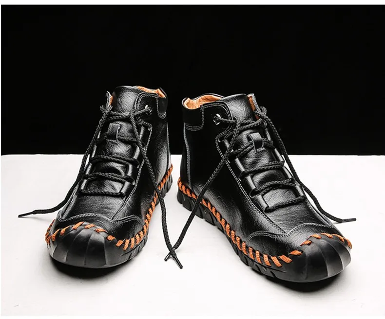 Мужские кожаные ботинки, теплые ботинки с плюшевой подкладкой для снега, рабочая обувь, мужская обувь, резиновые ботинки, кроссовки, размер 48