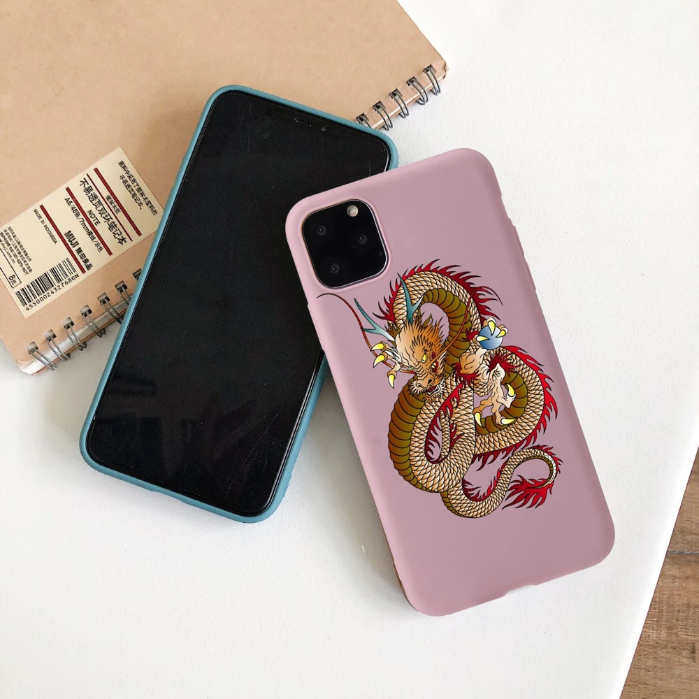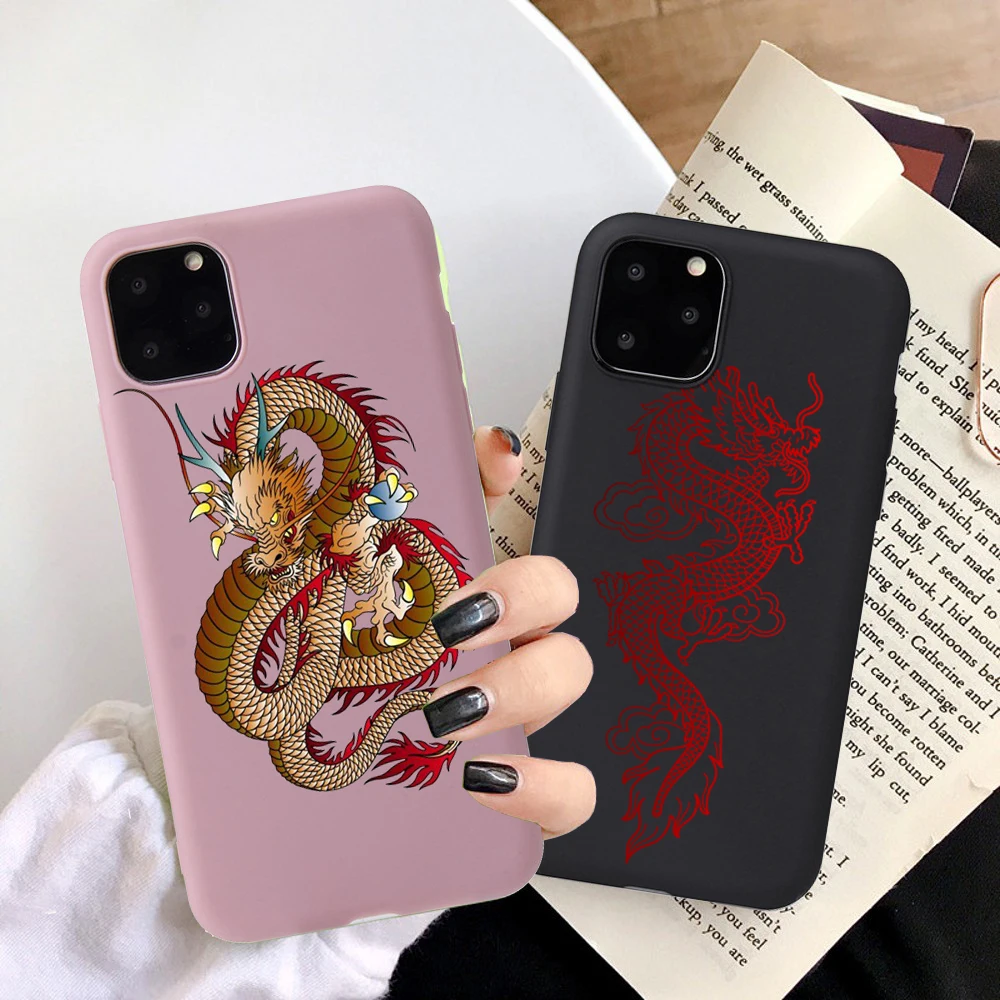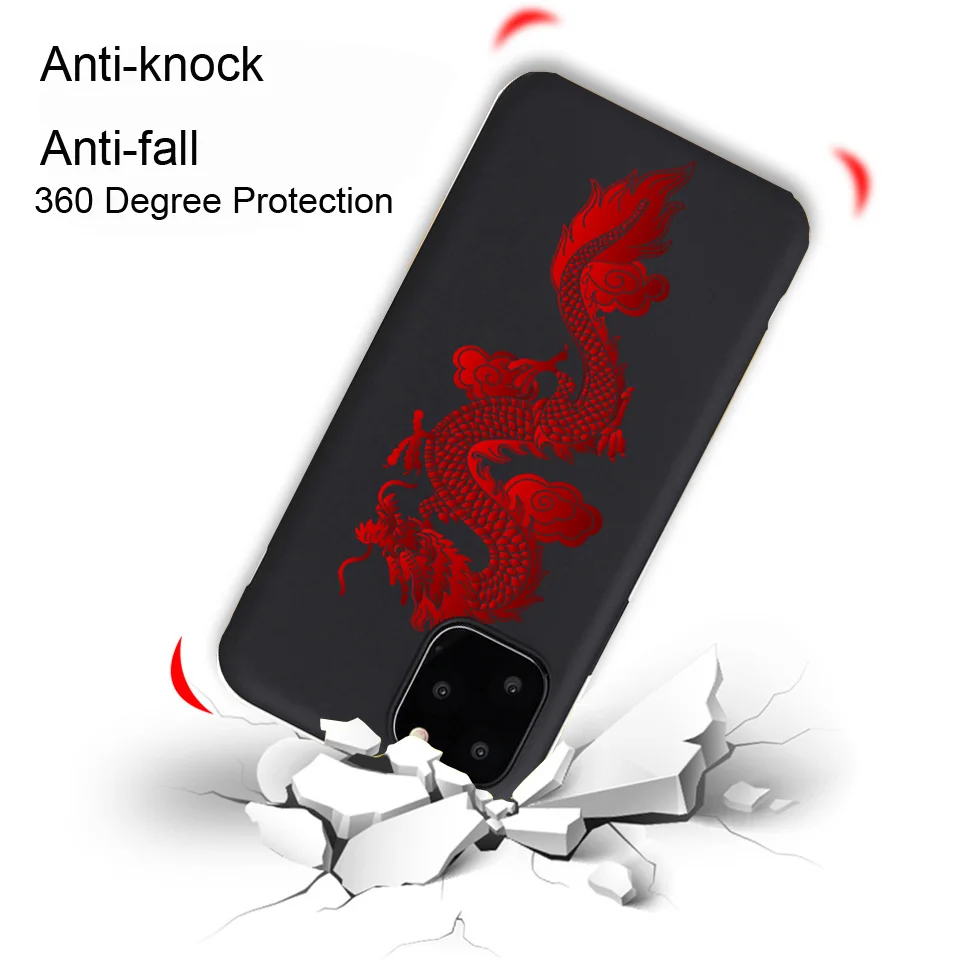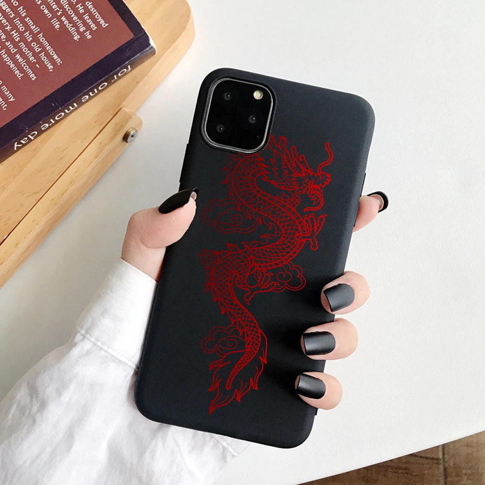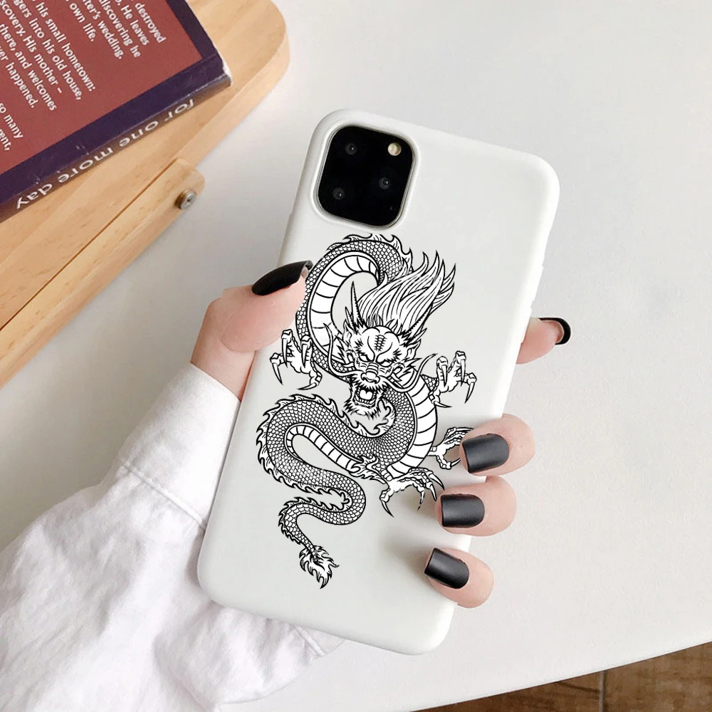 Чехол-накладка для iPhone 12, 7, 8 Plus, X, XR, XS, 11 Pro MAX, 6s, SE 2020, силиконовый, с изображением черного дракона