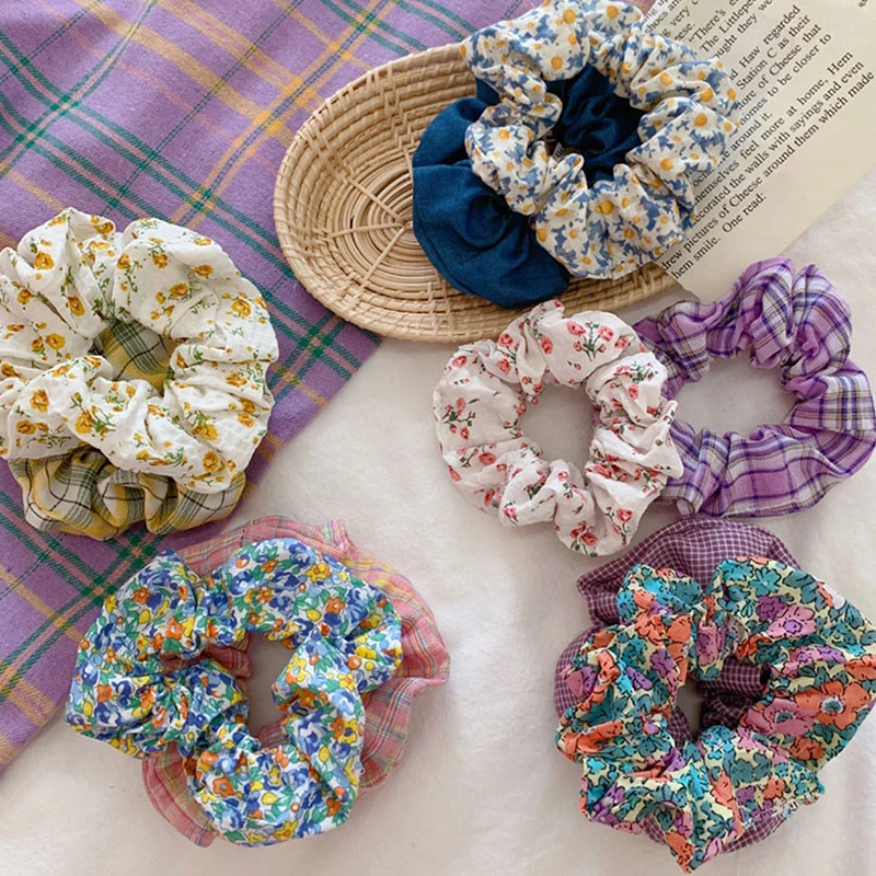 Резинка для волос, тканевая, в клетку, с цветочным принтом, Женский хвостик