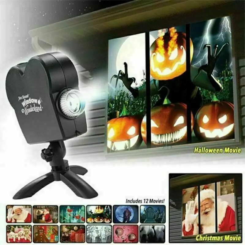 Лазерная сценическая лампа с окошком для диджея, рождественские прожекторы, проектор, прожектор в стране чудес, лампа для фильмов, Светильники для хэллоуивечерние