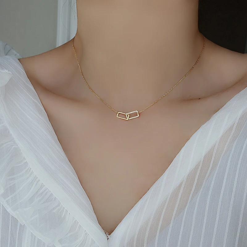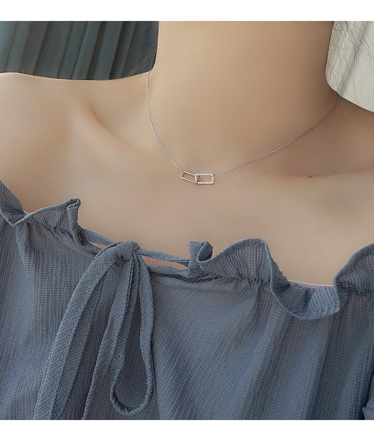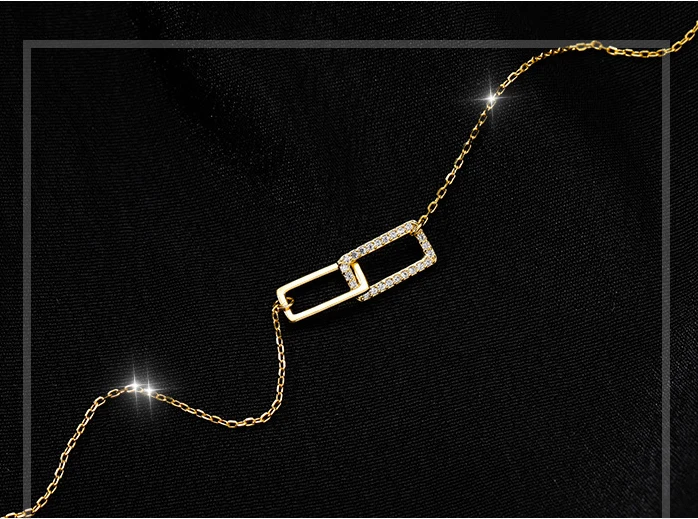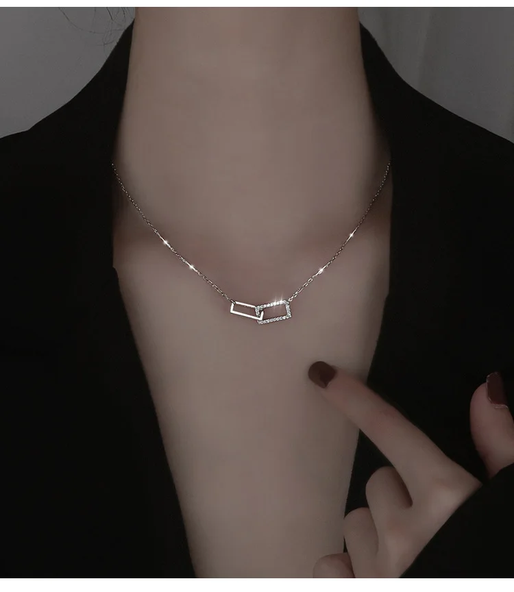 Ожерелье женское из серебра 925 пробы, с двойной квадратной формой, с бриллиантами