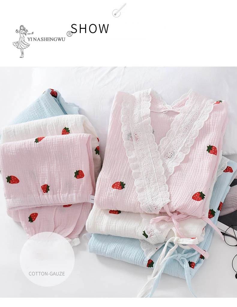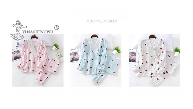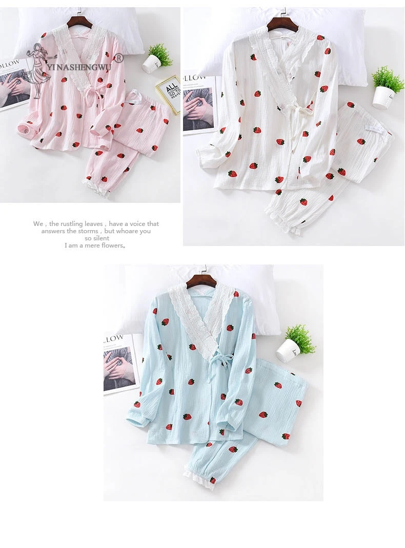2PCS Japanese Kimono Yukata Confinement Double-LayerMaternity Pajamas Nursing Wear Pajamas Home Nursing Clothing