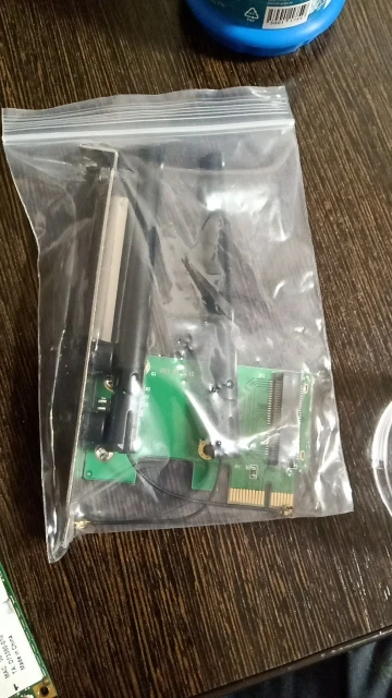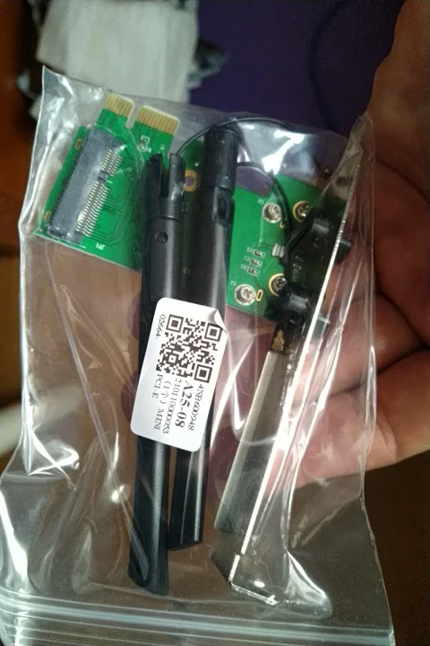 10 дней до Брянска, все работает и не повреждено, упаковано в пакет и немного обертки, стандартные винты под длинную плату wifi и вроде впаяны, предется переделывать.