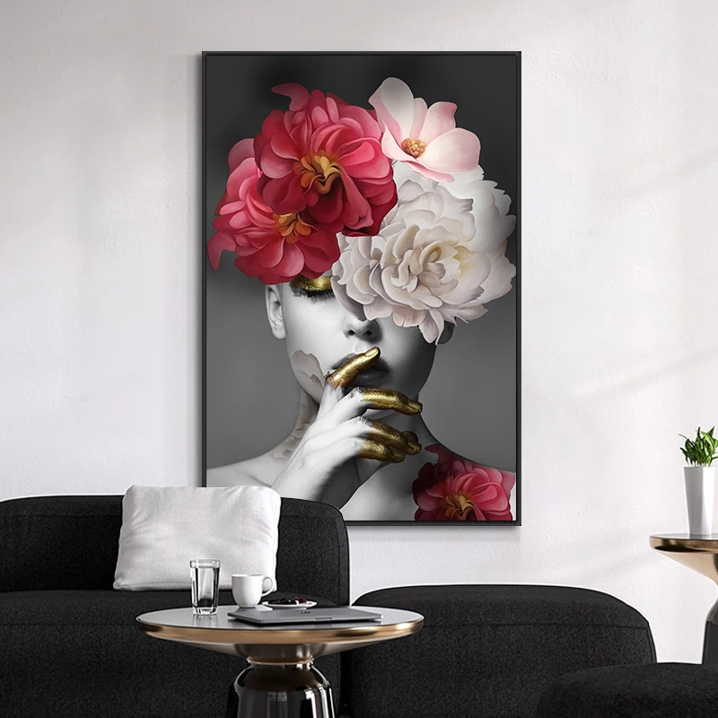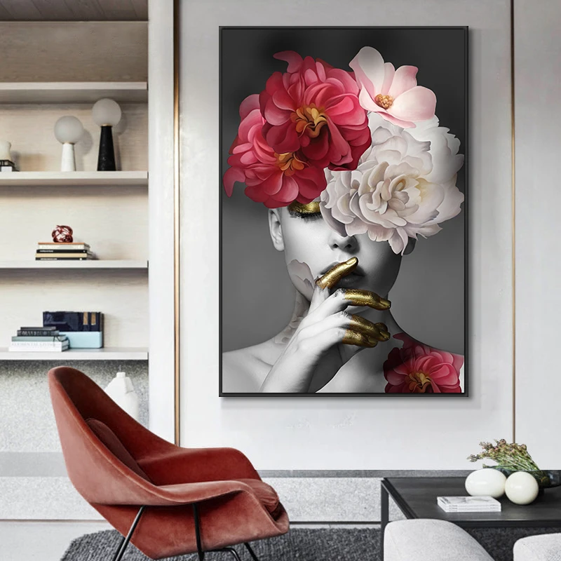 картины для интерьера Современный цветок на голове с золотом, картина маслом на холсте для женщин, скандинавский постер, Настенная картина для гостиной, домашний декор