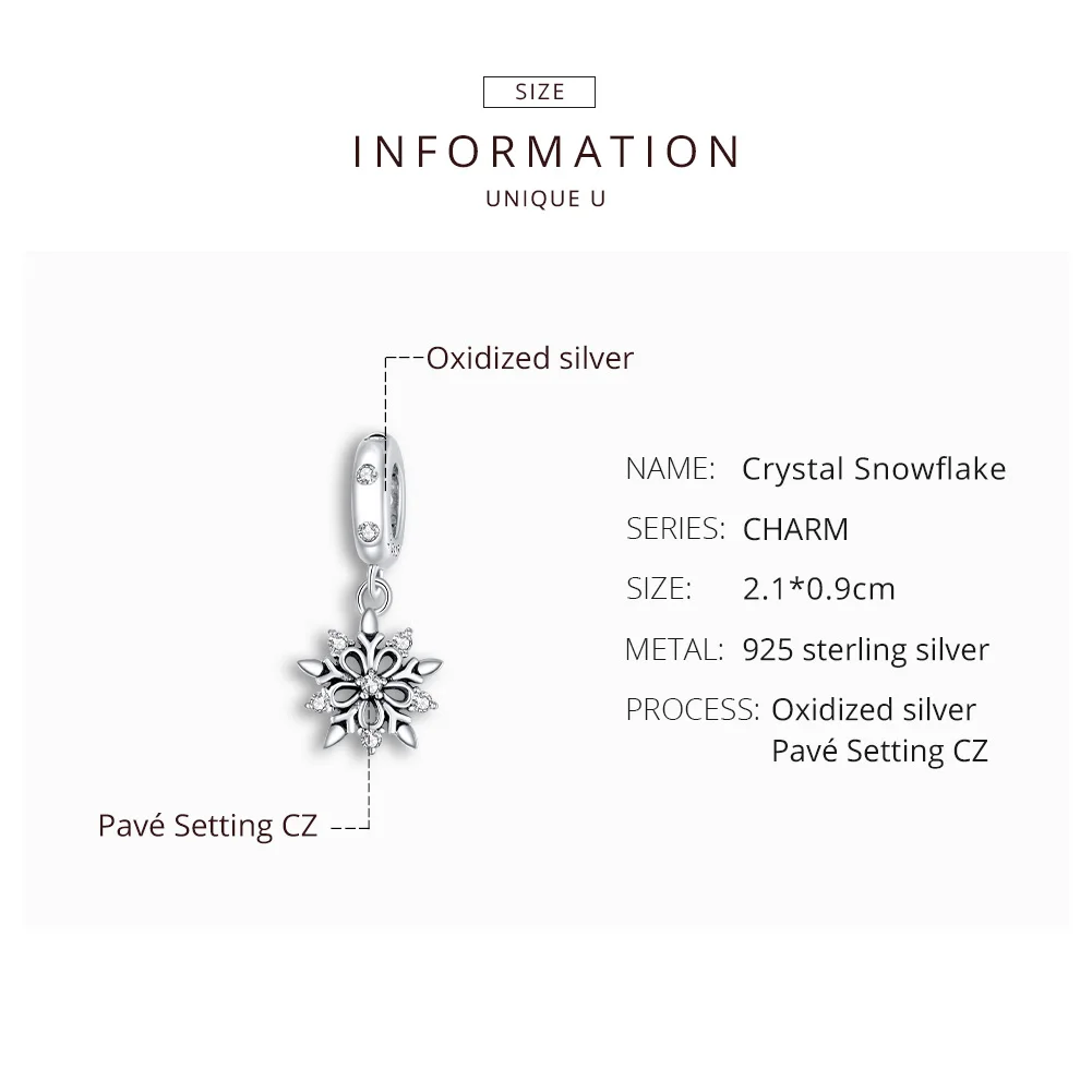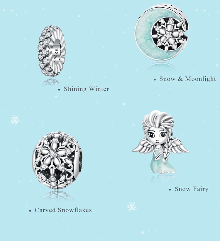 Шарм-Снежинка из серебра 925 пробы для браслета, женский, SCC1649