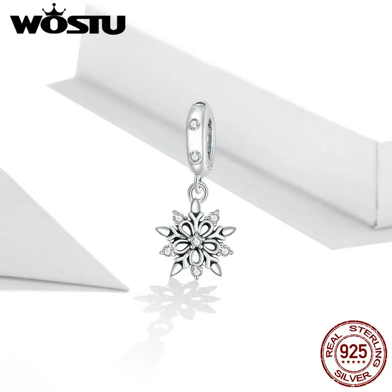 WOSTU 925 Стерлинговое серебро Кристалл Снежинка амулеты циркон кулон из бисера Подходит оригинальный браслет ожерелье для женщин ювелирные изделия CQC1649
