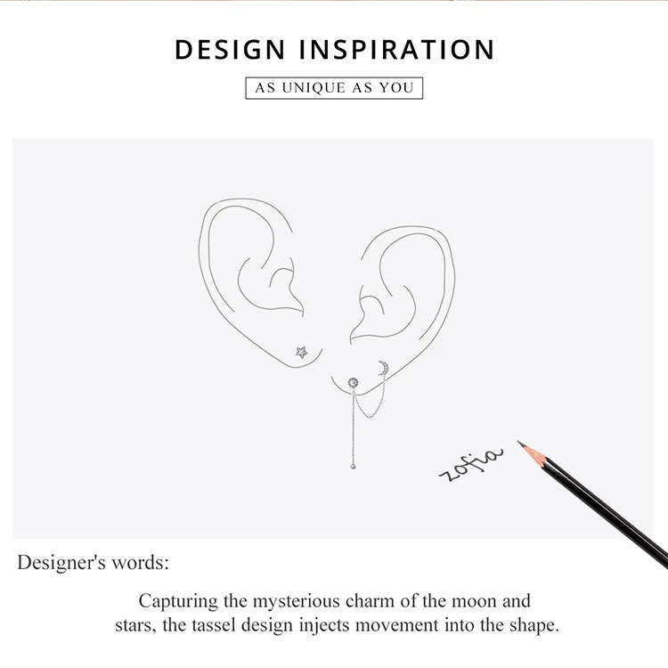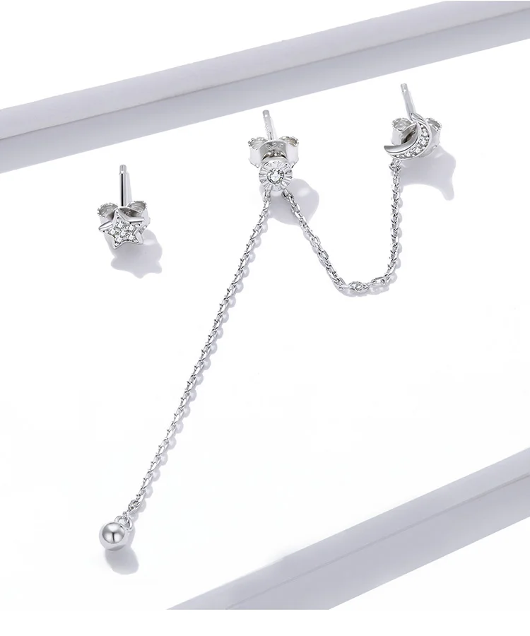 Женские серьги-подвески в виде звезд и Луны, из серебра 925 пробы