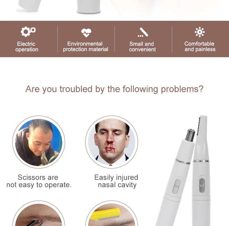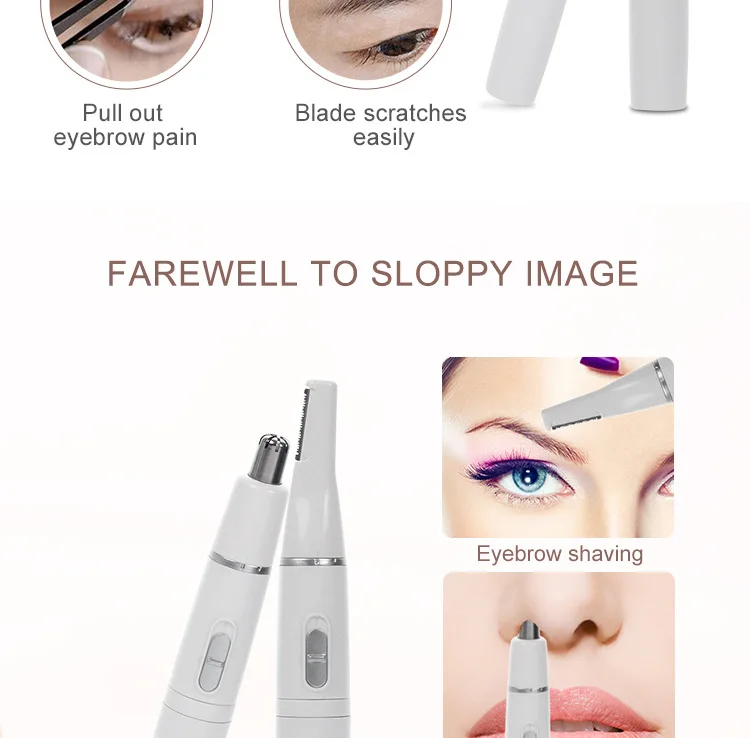 2-в-1 триммер для волос на лице, бритва для волос в носу, ушах, триммер, скребок для бровей, безопасный уход за лицом, бритва для мужчин и женщин