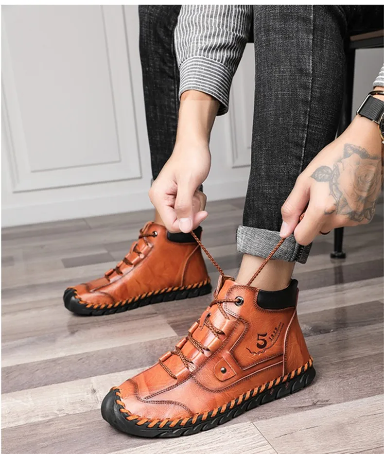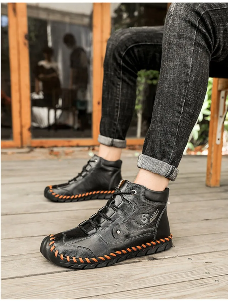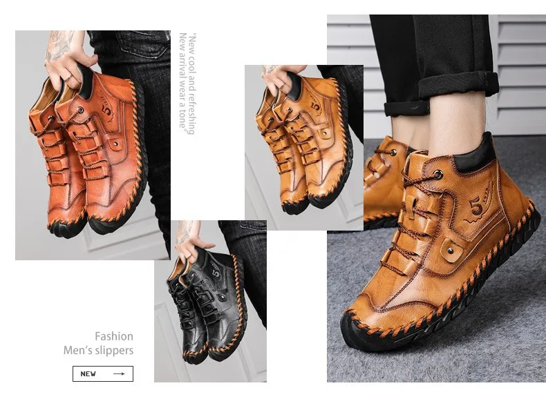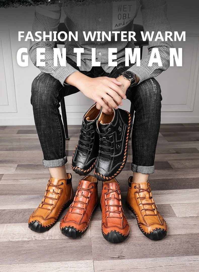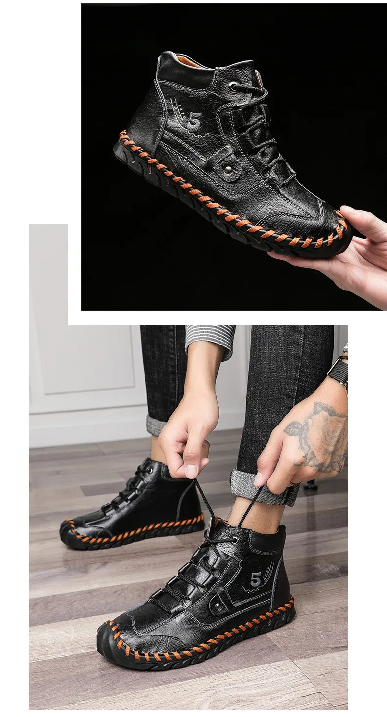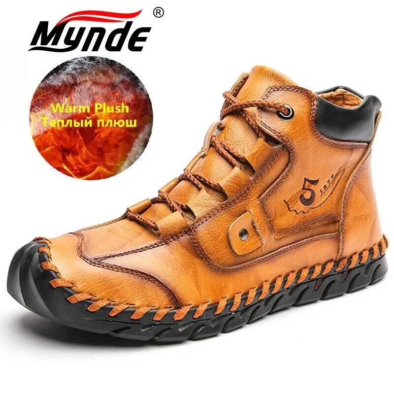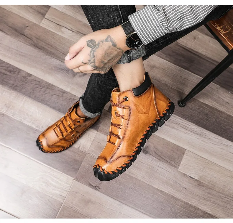 Мужские зимние ботинки ручной работы, кожаные мужские теплые зимние ботинки, уличные удобные мужские мотоциклетные ботинки