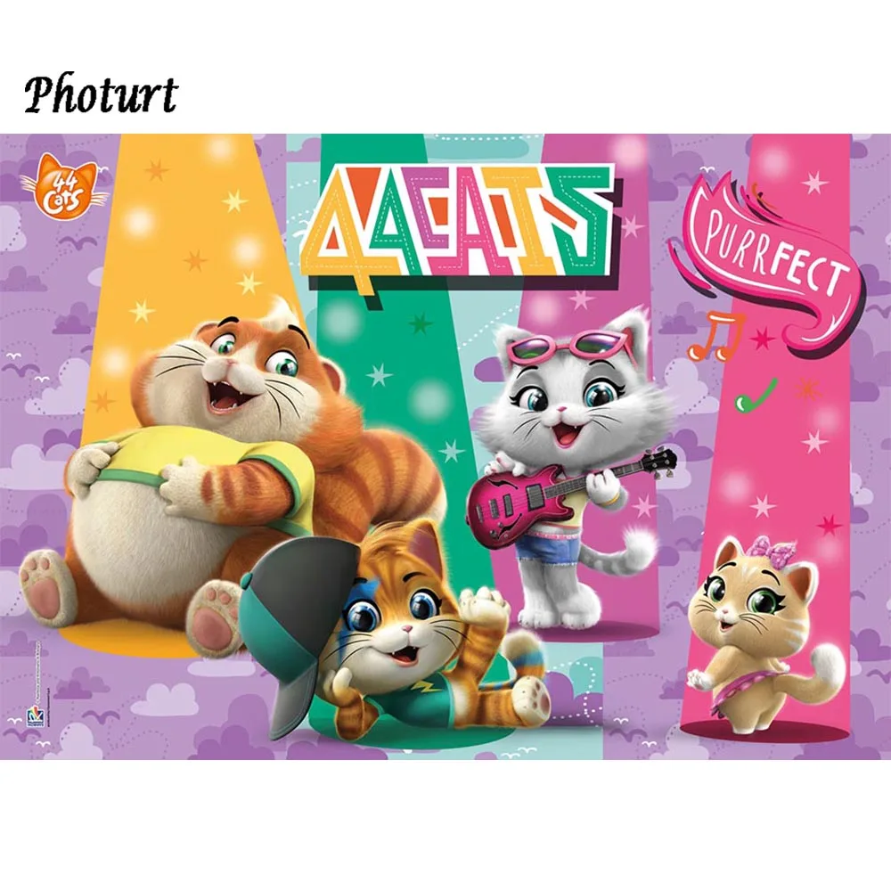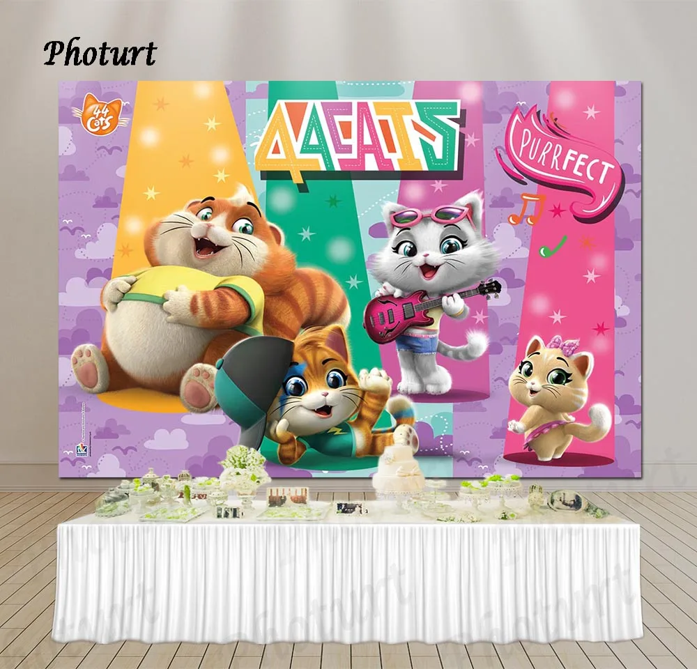 PHOTURT 44 кошки фон для девочек День рождения украшения фон в розовую полоску музыка виниловая фотография реквизиты-украшения