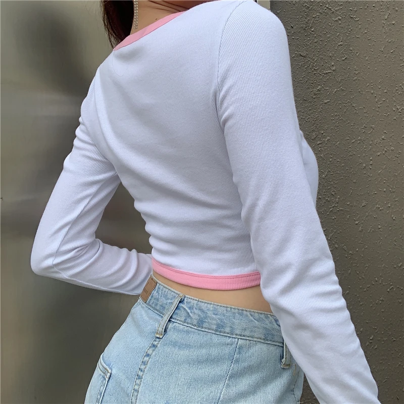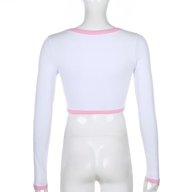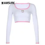 Женская футболка с вышивкой IAMSURE, укороченный топ с длинными рукавами в Корейском стиле, милая уличная одежда