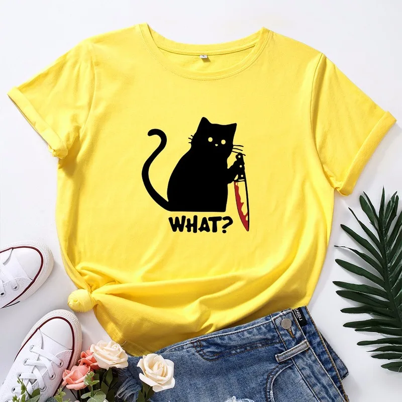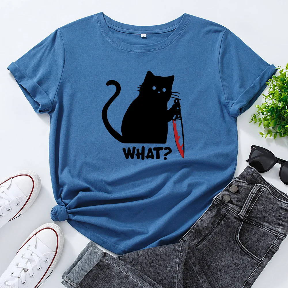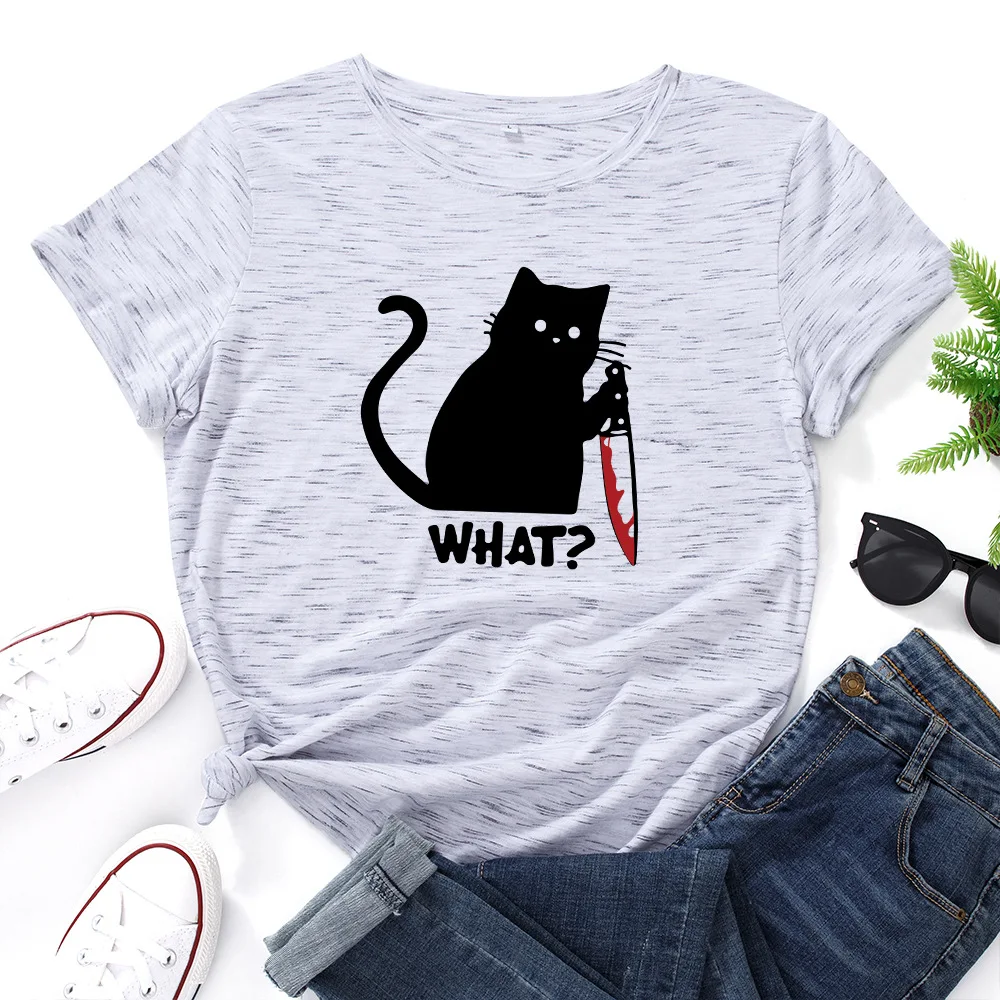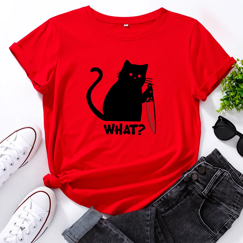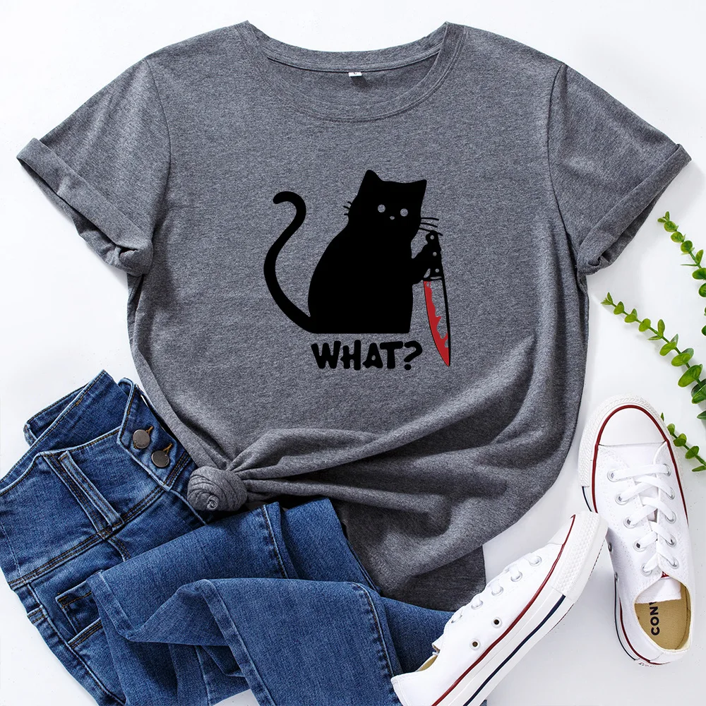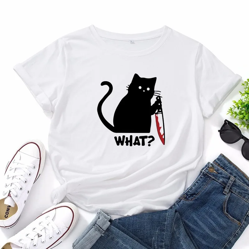 Футболка женская с графическим принтом, универсальная хлопковая рубашка оверсайз с коротким рукавом, с круглым вырезом, с забавным принтом кошки, 5XL, на лето