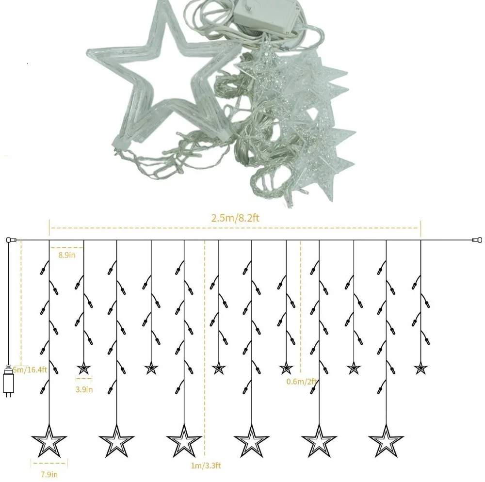 Рождественская светодиодная гирлянда со звездами, s на окне, Сказочная гирлянда, занавеска для дерева, новогодний праздничный декор для бара, свадьбы, праздника