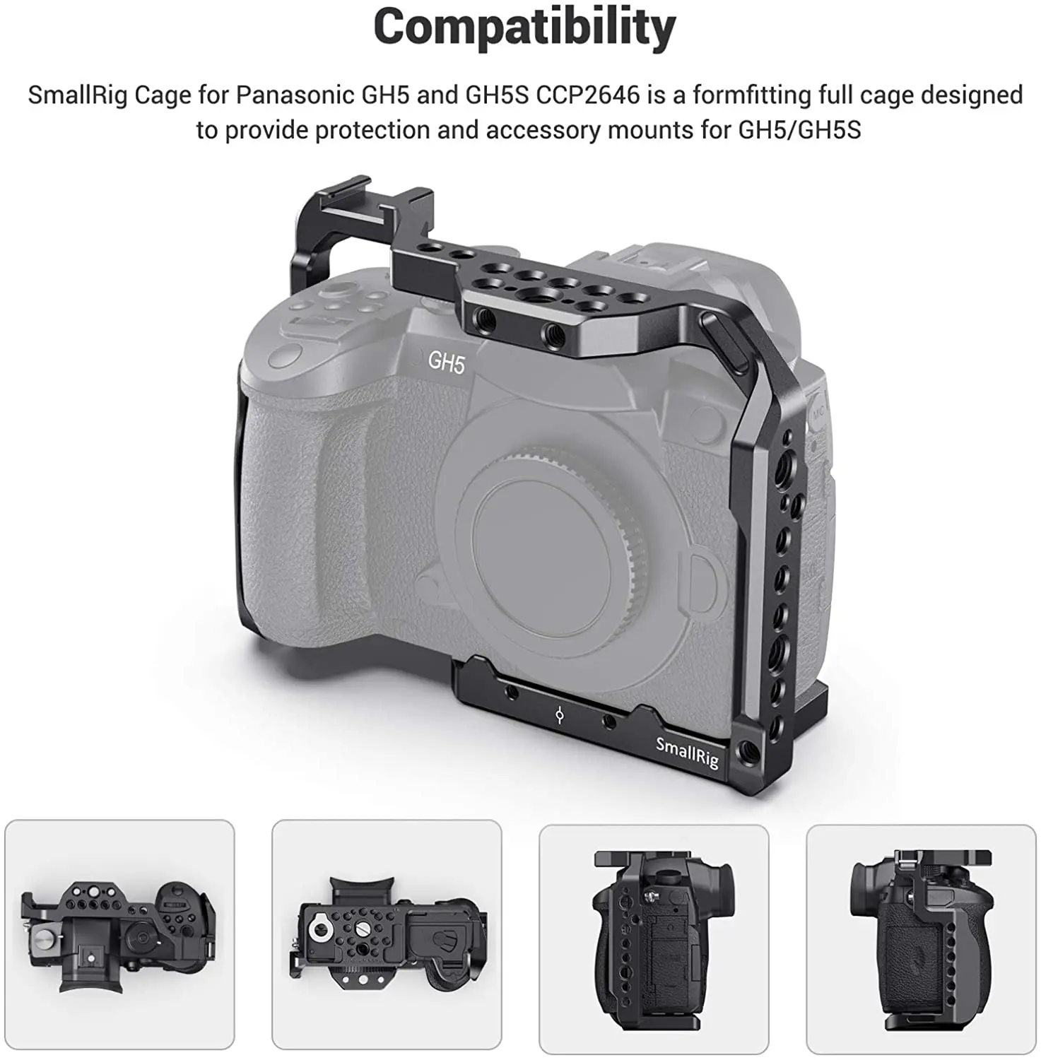 Клетка идеально сочетается с gh5, она хорошо сидит и имеет два винта, чтобы убедиться, что она не двигается сверху! Много отверстий, чтобы соответствовать вашим аксессуарам