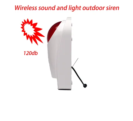 Установка: в основном Устанавливается под крытым/наружным карнизом, чтобы предупредить соседей и угрожать злоумышленникам при возникновении сигнала тревоги;"