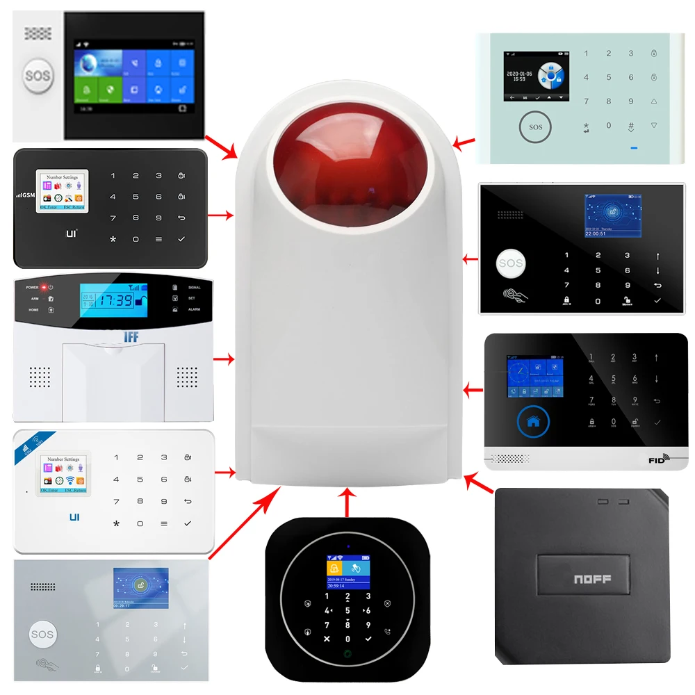 433 дБ внутренняя и наружная Водонепроницаемая беспроводная мигающая сирена, стробоскосветильник сирена для система охранной сигнализации для дома