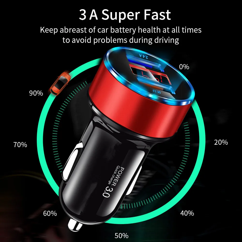 Function 3Car Charger Quick Charge 3.0