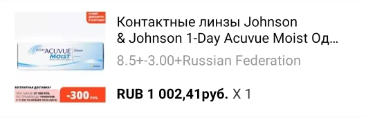 Очень рада покупке! Получилось со скидкой сильно дешевле, чем в оптике или киосках! Доставка по Москве заняла два дня) пришло не на почту, а в магазин пятёрочка!)