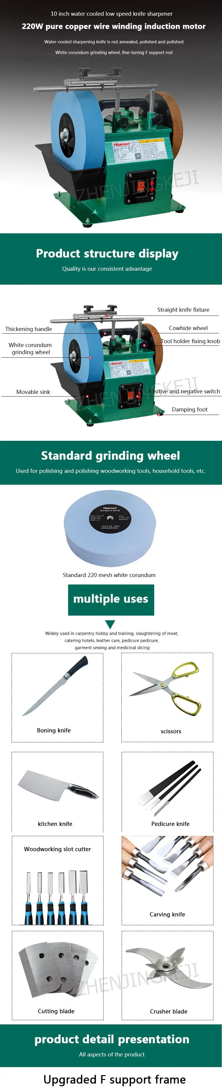 10 дюймов 220V110V позитивные отрицательный Белый Плавленый оксид алюминия точилка низкая Скорость мясорубку полировки машины Настольный шлифовальный станок
