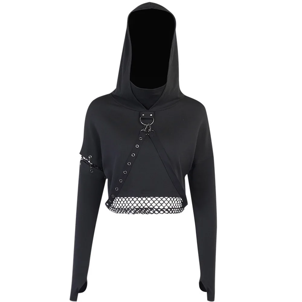 Женская сетчатая толстовка с капюшоном, в готическом стиле