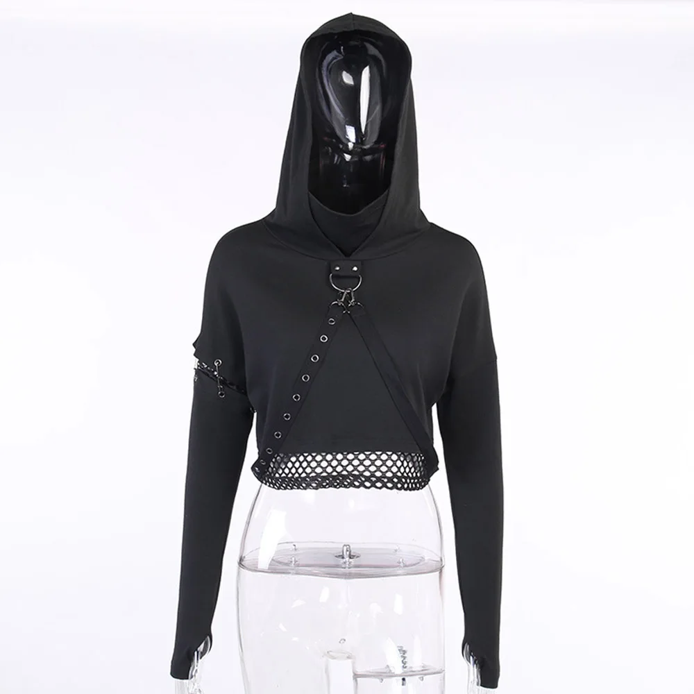 Сетчатая Толстовка Goth Dark в стиле панк с цепочкой, Свободный пул...