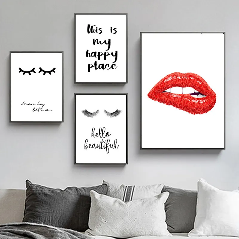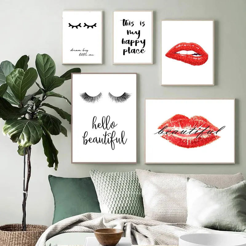 Плакаты с красными губами, постеры красоты художественная стена с цитатой, Картина на холсте с ресницами, модное украшение для дома, Современное украшение для гостиной